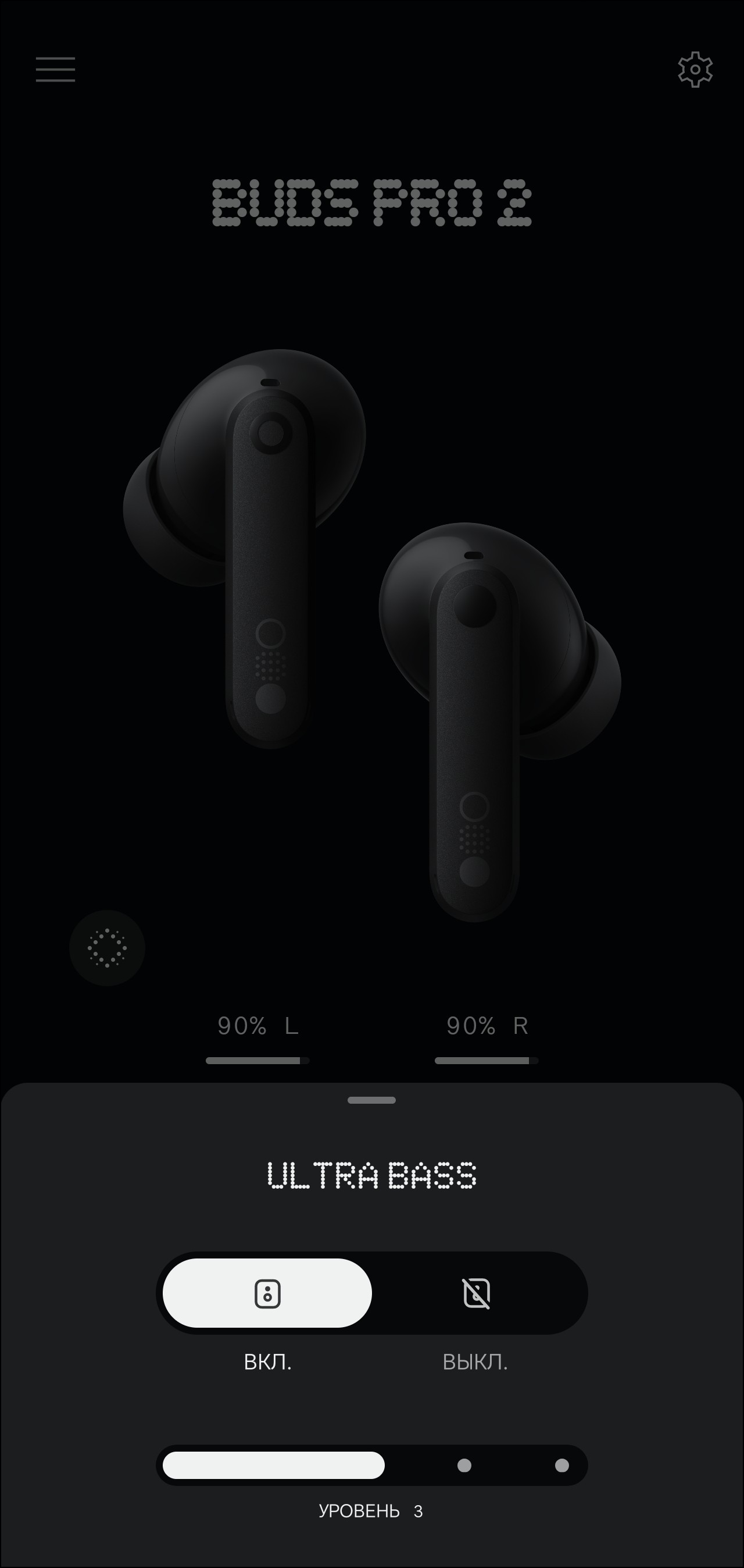 Небольшой подарочек для бассхэдов: режим Ultra Bass с пятью уровнями добавления акцента на низких частотах. Штука приятная и даже полезная, но мы бы всё равно предпочли полноценный эквалайзер разрозненным настройкам и «бустерам» баса.