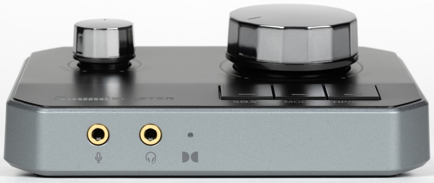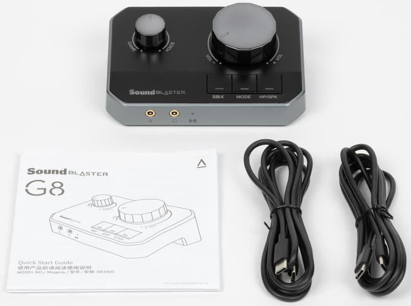Выглядит Creative Sound Blaster G8 неожиданно лаконично для игрового продукта — дизайн по духу ближе к профессиональным устройствам, чем к геймерским.