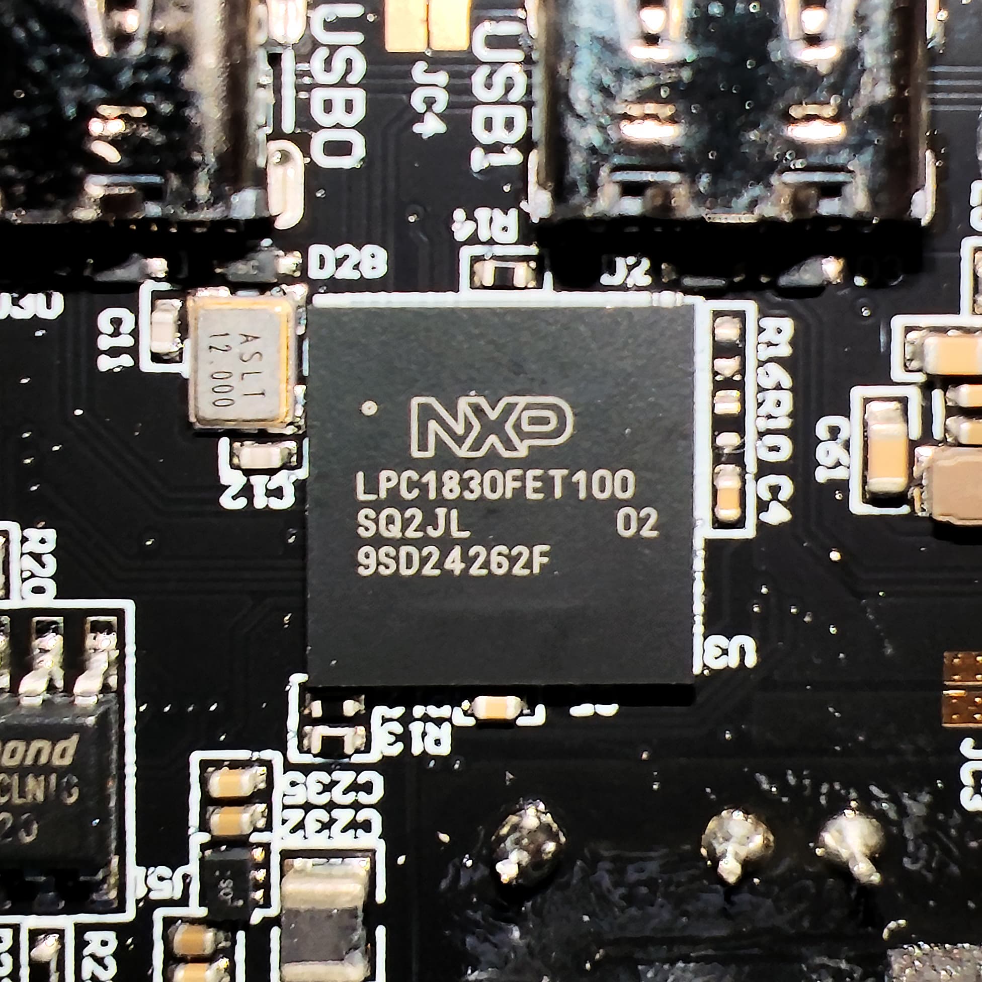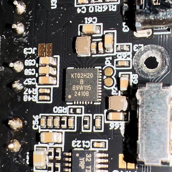 Из интересного тут микроконтроллер LPC1810FET100 производства NXP Semiconductors и память Winbond 25Q40CLSNIG. Ну и, конечно, ЦАП KT02H20 периодически встречающийся в недорогих китайских мобильных ЦАПах для телефонов — видимо, он выбран в качестве «вспомогательного» для обеспечения второго подключения.
