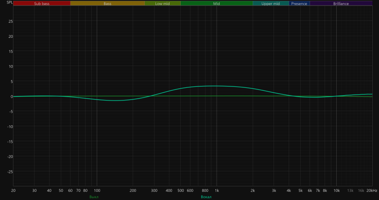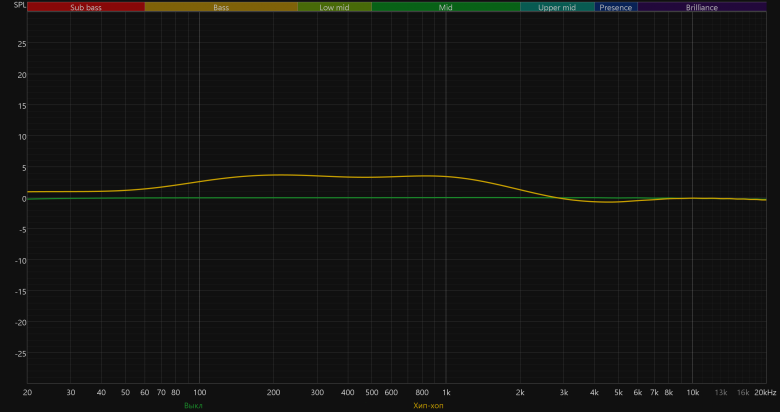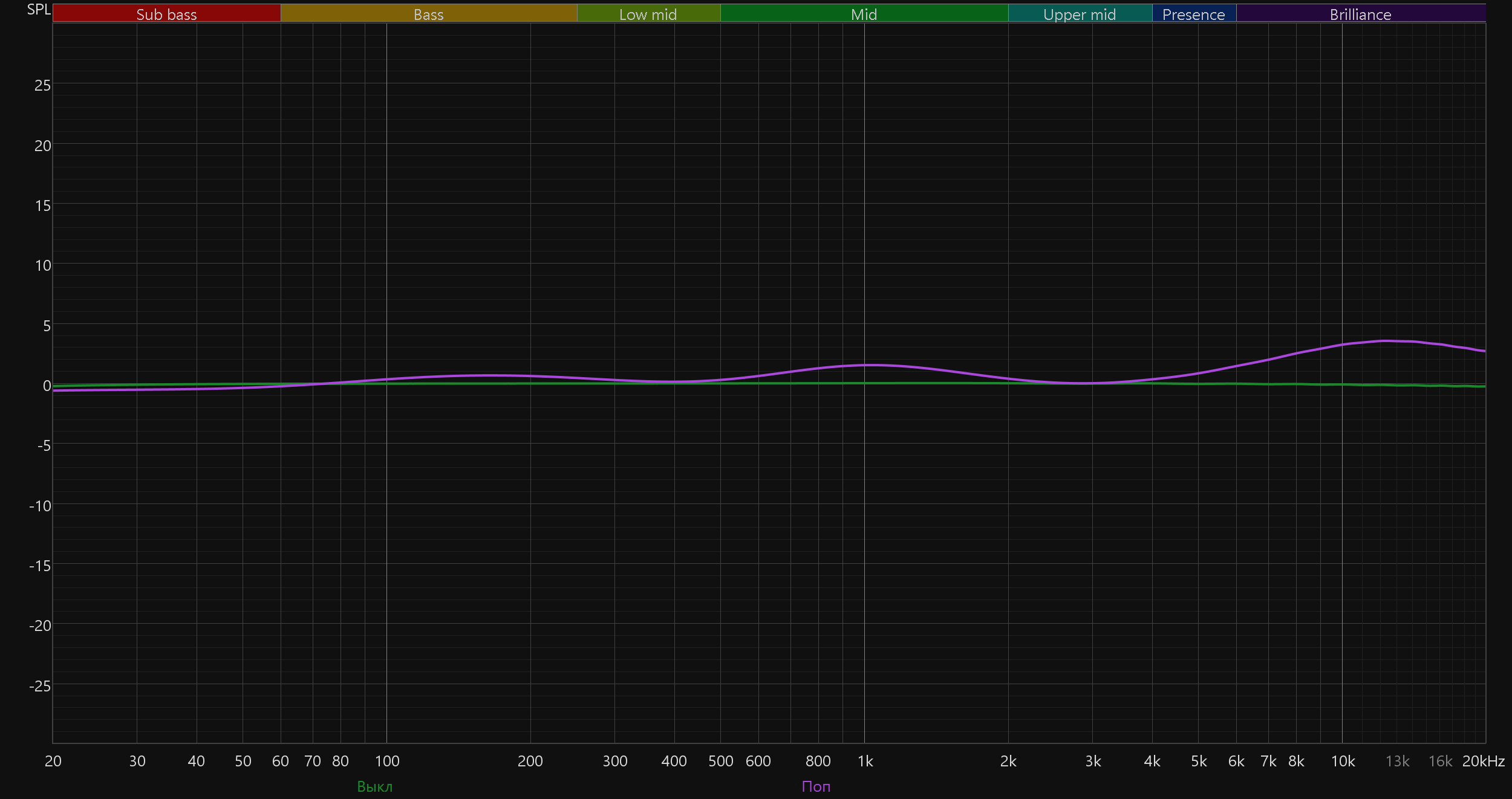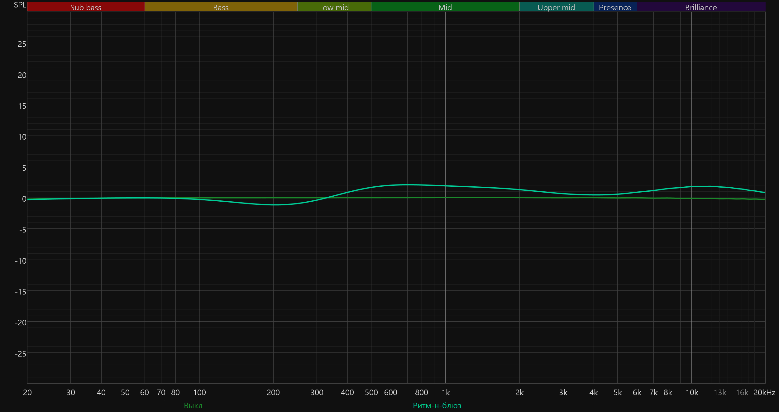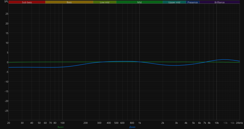 Тут важно отметить два момента. Во-первых, эквалайзер эффективно работает. А во-вторых, встроенные пресеты обходятся со звуком достаточно гуманно, не приводят к серьезному нарушению тонального баланса — соответственно, пригодны для использования.