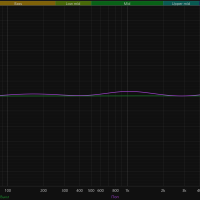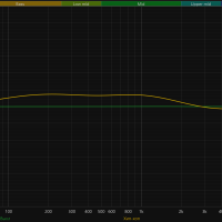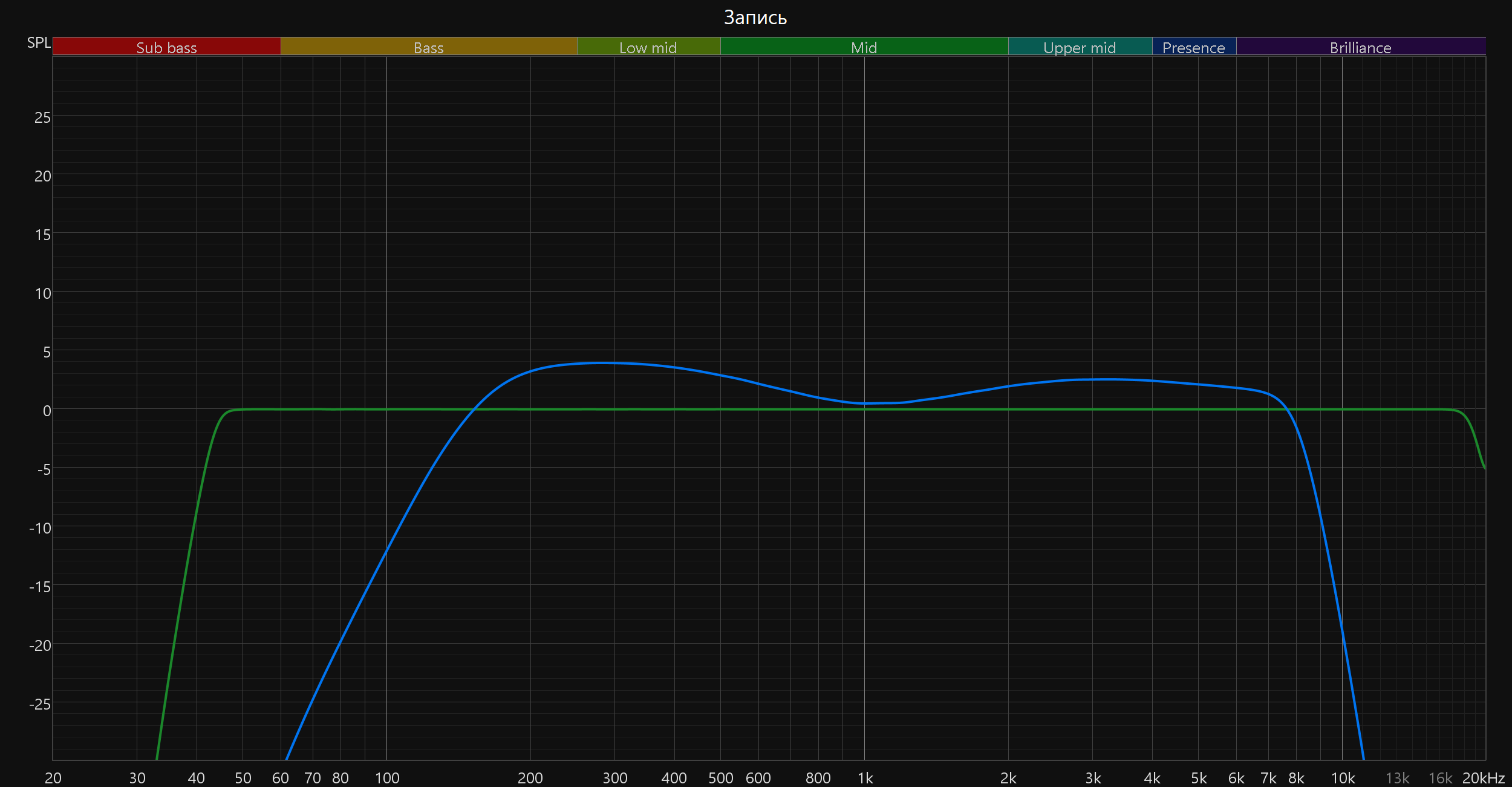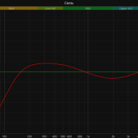 Следующая интересная опция — эквалайзер. Производитель предлагает несколько его пресетов на выбор, при этом по названиям сложно сказать, что именно они делают. Выясним это самостоятельно. Для этого снова подключим микрофон и с его помощью снимем графики АЧХ с мониторной акустики. Естественно, АЧХ и микрофона, и акустики далеко не равномерны, потому создадим на основе получившегося графика корректирующий профиль, который на него же и наложим. В итоге предсказуемо получим ровную линию. Далее активируем эквалайзер в приложении и наглядно увидим, как он воздействует на получаемый сигнал.