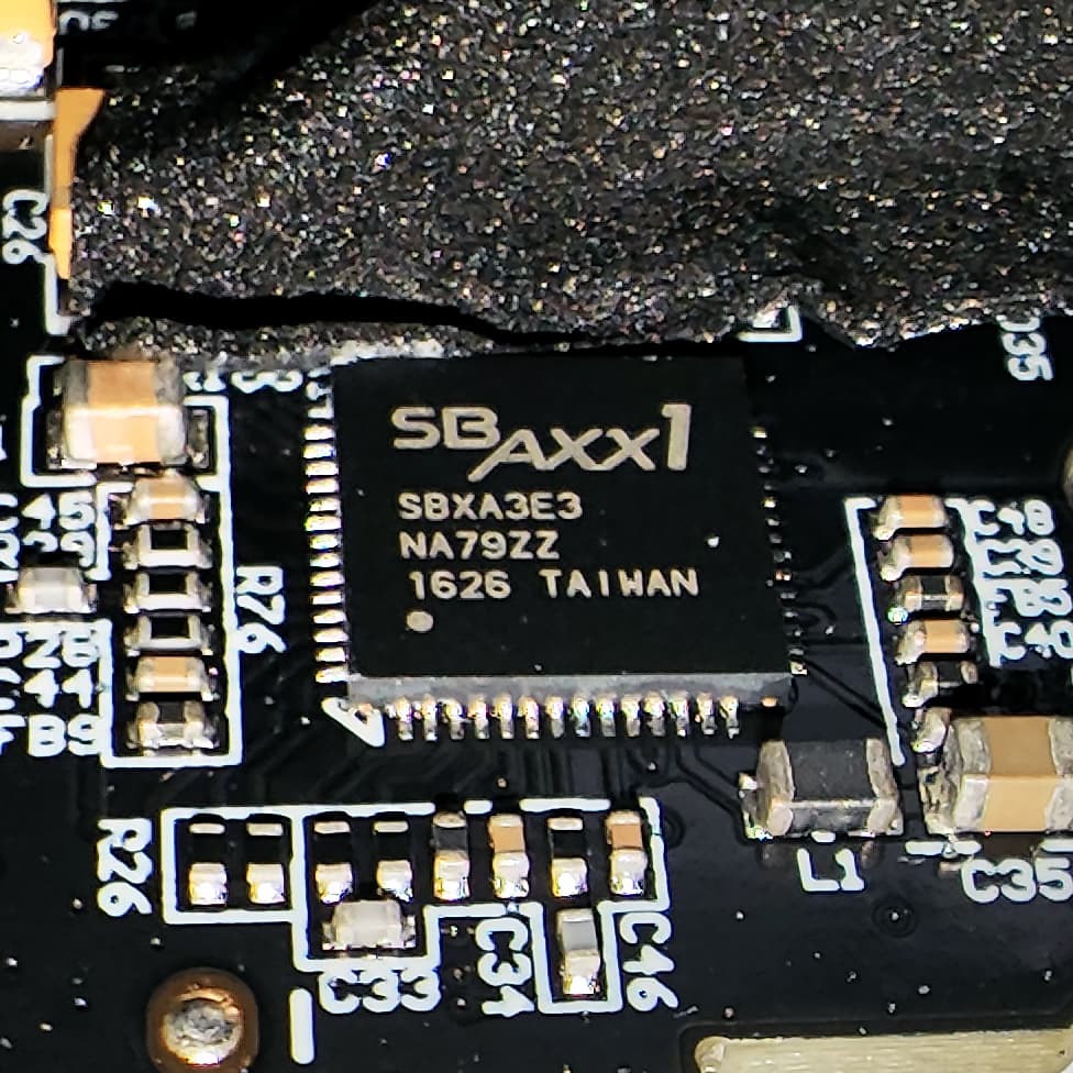 В качества ЦАПа вместо Cirrus Logic CS43131, который был установлен в Creative Sound BlasterX G6, выступает несколько более свежий, но мало отличающийся по характеристикам CS43198. За обработку звука отвечает DSP процессор SBAxx1. В качестве АЦП вновь выбран Cirrus Logic CS5361.