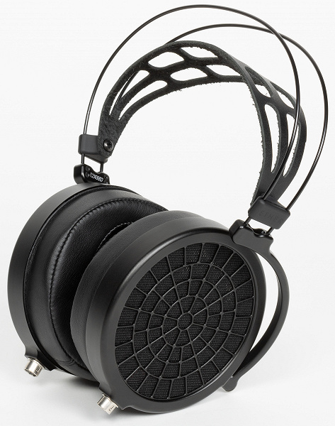 Конструкция у наушников открытая, внешняя часть излучателей прикрыта слоем перфорированного материала и защищена металлической сеткой. Размер драйвера, кстати, составляет 71×45 мм. Диафрагма выполнена из алюминия, что позволило снизить ее массу на 70% в сравнении с драйвером Dan Clark Audio предыдущего поколения. Здесь мы, конечно, вновь цитируем описание производителя.