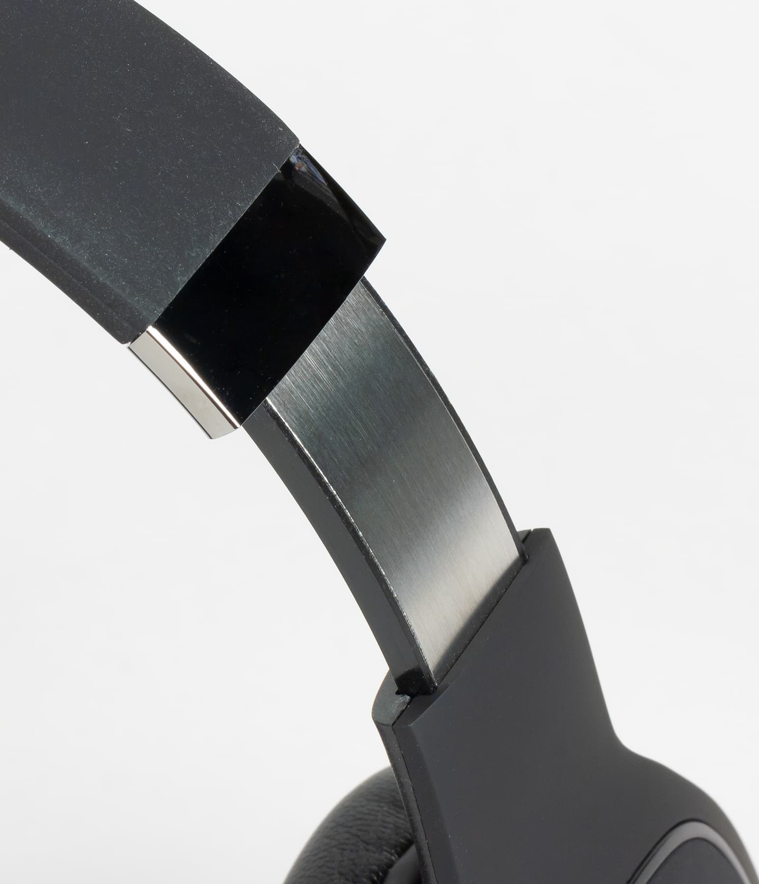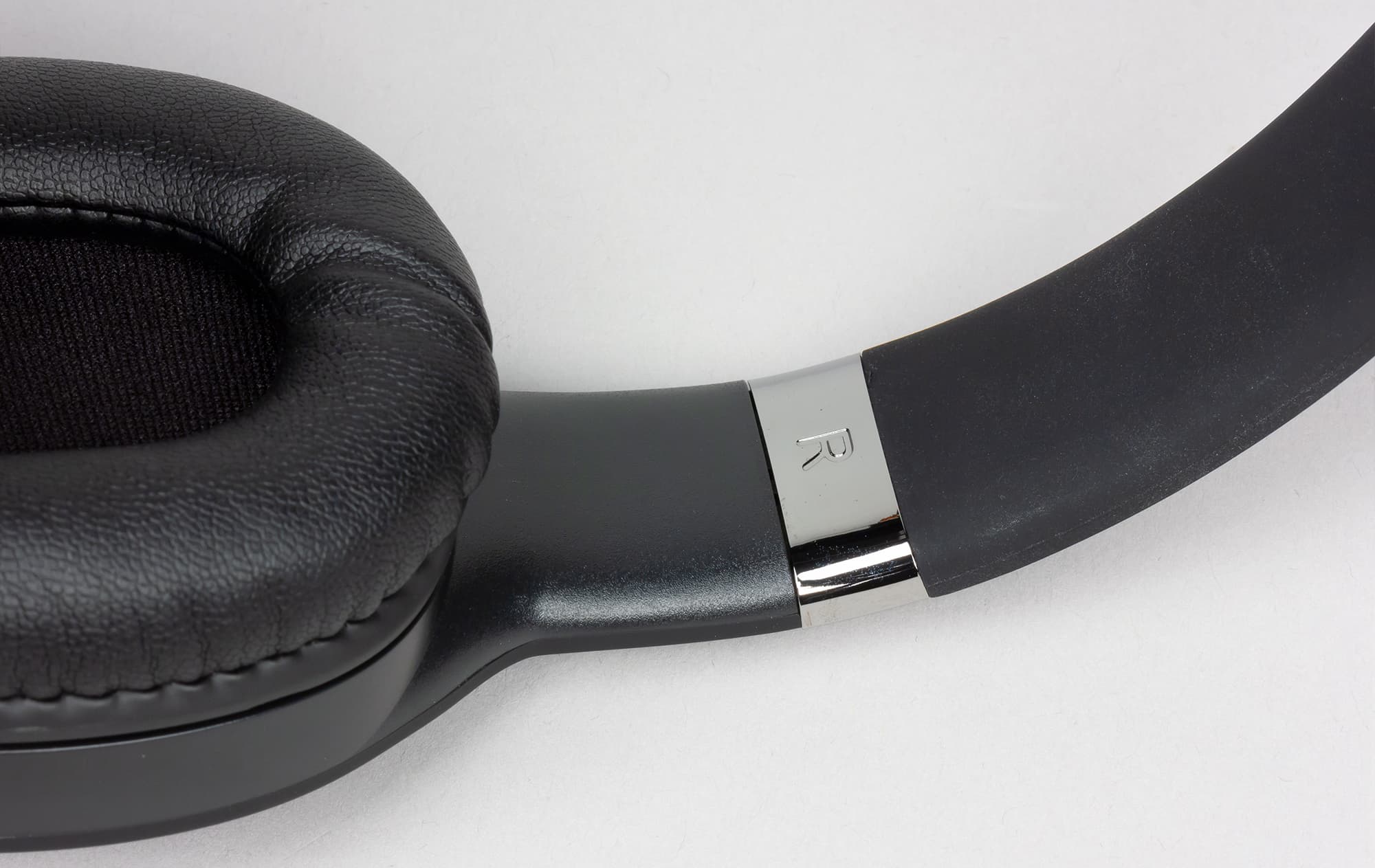 Дужка наушников покрыта оболочкой из пластика софт-тач, утолщение которой также выполняет функцию подушки. Подобное решение позволяет сделать конструкцию более минималистичной и компактной, однако удобство эксплуатации снижается.