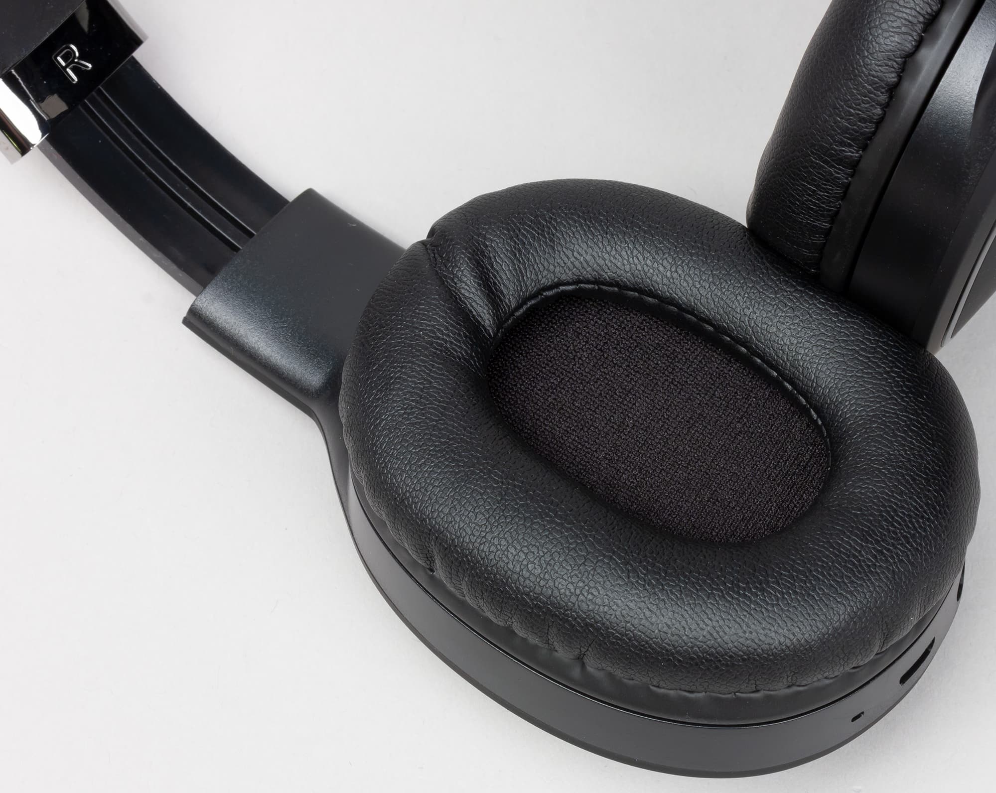Амбушюры выполнены из искусственной кожи с мягким наполнителем. Динамик закрывает защитная сетка. Размер амбушюр подразумевает, что они ложатся на ухо, не закрывая ушную раковину целиком. Ввиду отсутствия возможности поворота чашек по осям подобные амбушюры могут подойти не всем — модель рекомендуется померить перед покупкой. В нашем случае посадка наушников оказалась несколько жестковатой, верхняя часть амбушюр давила на уши сильнее, чем хотелось бы. Впрочем, комфорт использования оставался в допустимых пределах.