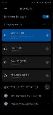 Подключение гарнитуры происходит стандартным образом. Открываем чехол — наушники начинают искать «знакомые» гаджеты, если не находят — активируют режим сопряжения. Далее кликаем по их названию в соответствующем меню. На этом все. Видим, что по умолчанию используется кодек SBC.