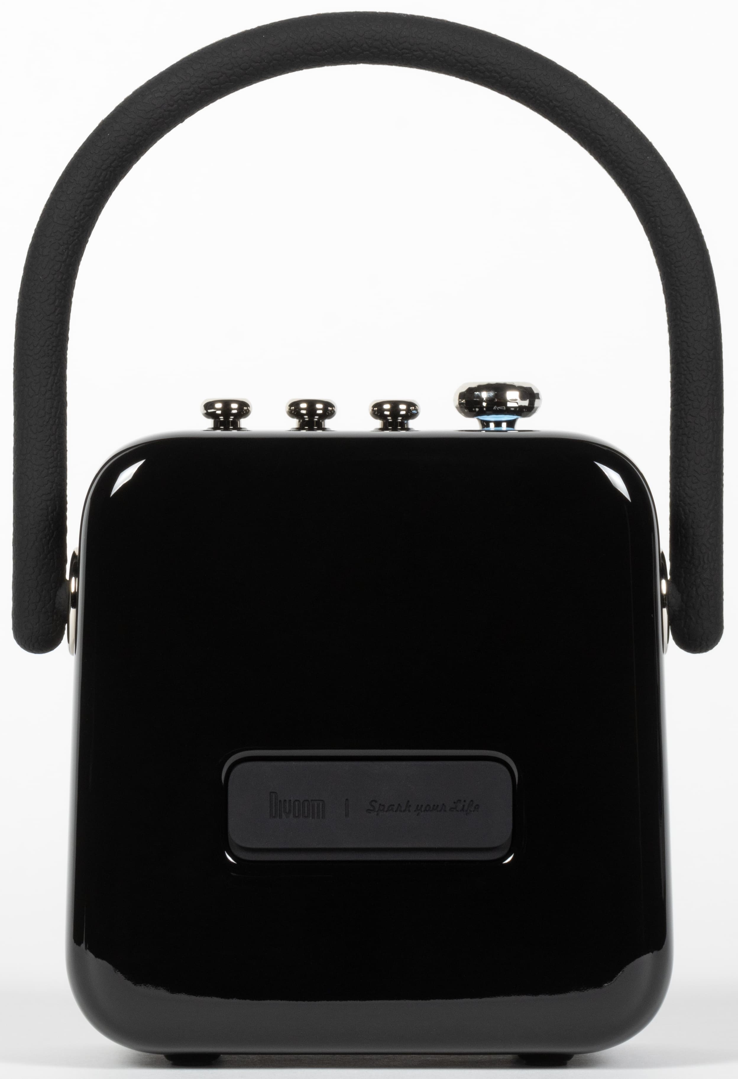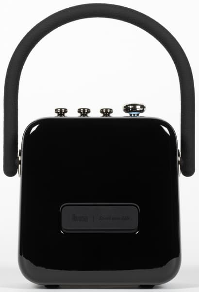 Корпус устройства выполнен из глянцевого пластика, на котором крайне легко появляются следы от прикосновений, что для портативного устройства является значительным недостатком. К счастью у Songbird-SE есть резиновая ручка, за которую ее можно переносить — браться за корпус необязательно. На ощупь она крайне приятна и может вращаться — во время использования колонки ее можно убрать назад, например.
