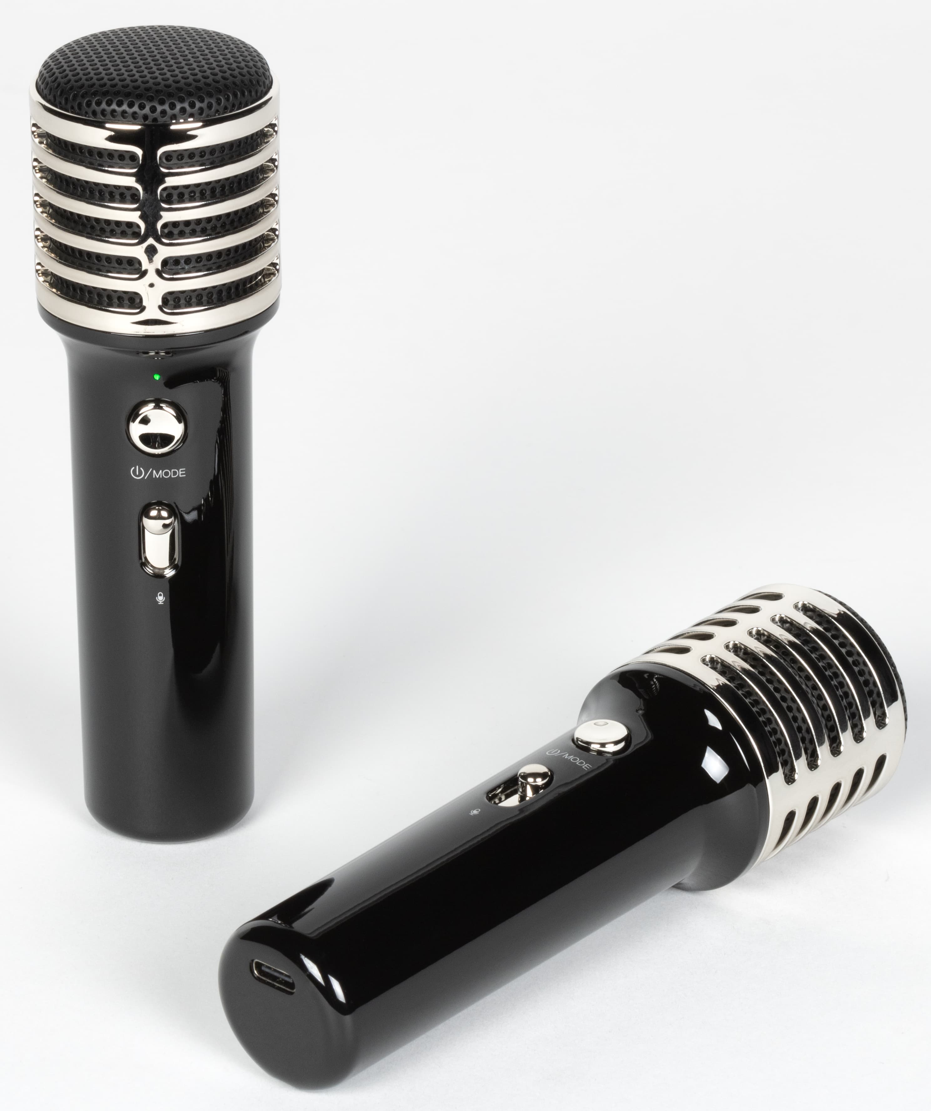 Выполнены микрофоны полностью из пластика — от корпуса и серебристых накладок до крышки с перфорированной «сетки», за которой скрывается капсюль.