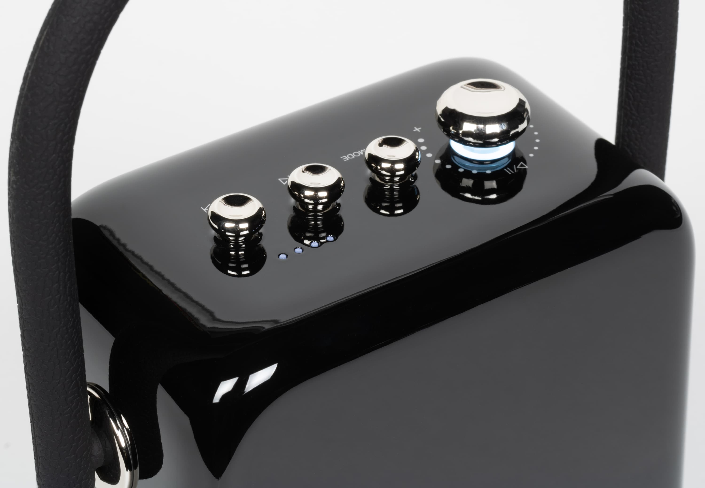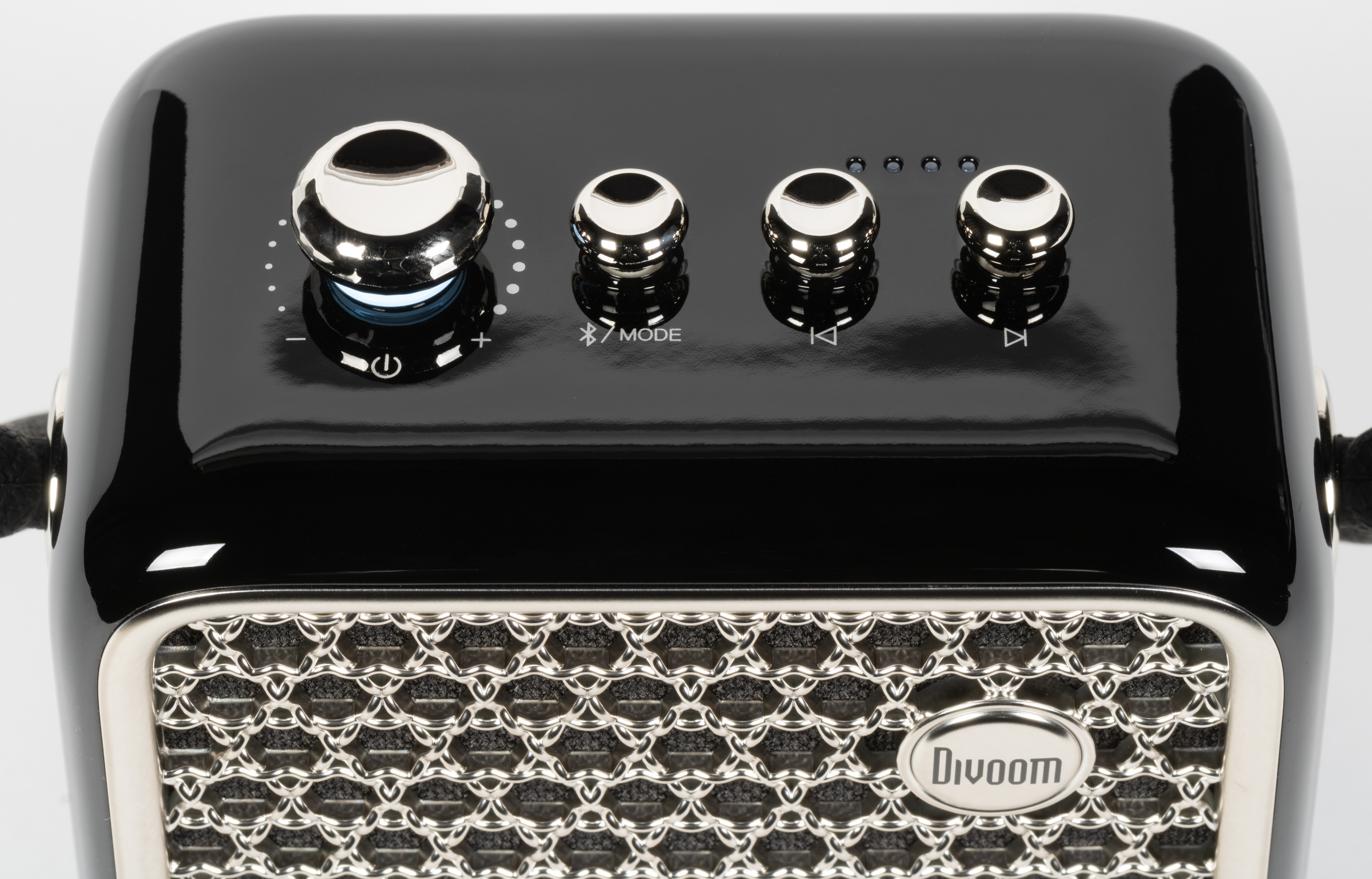 Регулятор громкости подсвечивается, рядом с кнопками также можно увидеть четыре светодиода, служащих в качестве индикатора уровня зарядки.