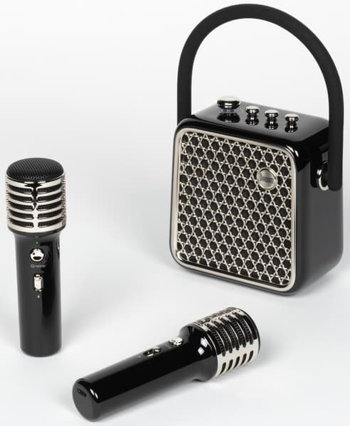 В комплект поставки входят колонка с заявленной мощностью 18 Вт и два микрофона — можно спеть даже дуэтом. Источники звука подключаются через Bluetooth или линейный вход, также поддерживается USB-подключение и воспроизведение аудиофайлов с карты microSD. Еще одна интересная особенность — наличие защиты от брызг IPX4, так что Songbird-SE можно смело брать с собой куда-нибудь на природу. При этом если ранее мы тестировали совсем компактные колонки производителя, то в данном случае речь идет о полноценной портативной акустике со сравнительно крупным корпусом размером 115×67,5×130 мм, внутри которого размещен динамик диаметром 68 мм — ожидания от звука устройства в данном случае растут пропорционально увеличению размеров.