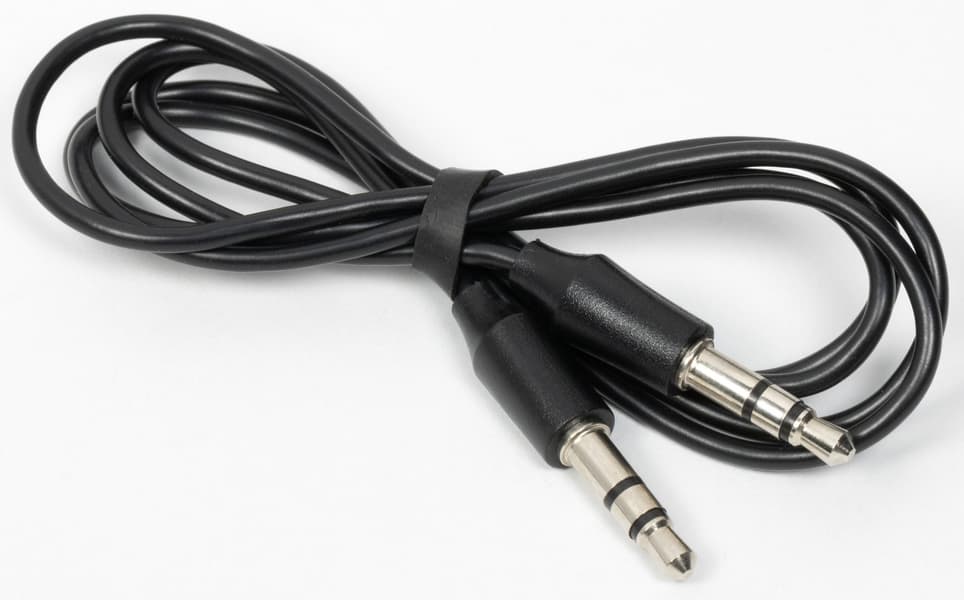 Для аналогового подключения к источникам звука служит аудиокабель длиной 80 см с двумя миниджеками на концах. Он крайне тонкий, не очень гибкий и всем видом заставляет сомневаться в своей надежности. Но с поставленной перед ним задачей при этом справляется.