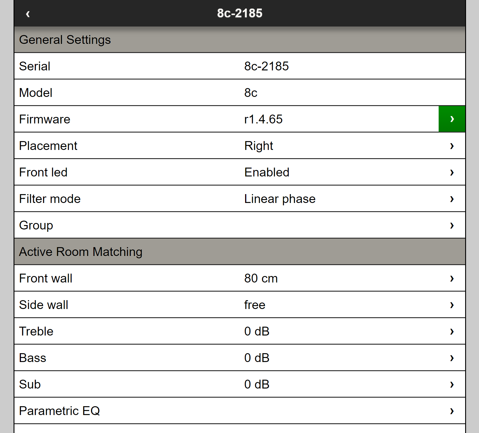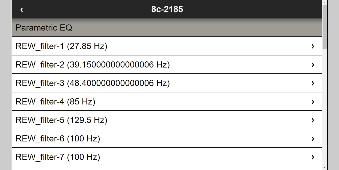 Ну и, наконец, есть параметрический эквалайзер с возможностью выбора заранее сделанных в REW пресетов.