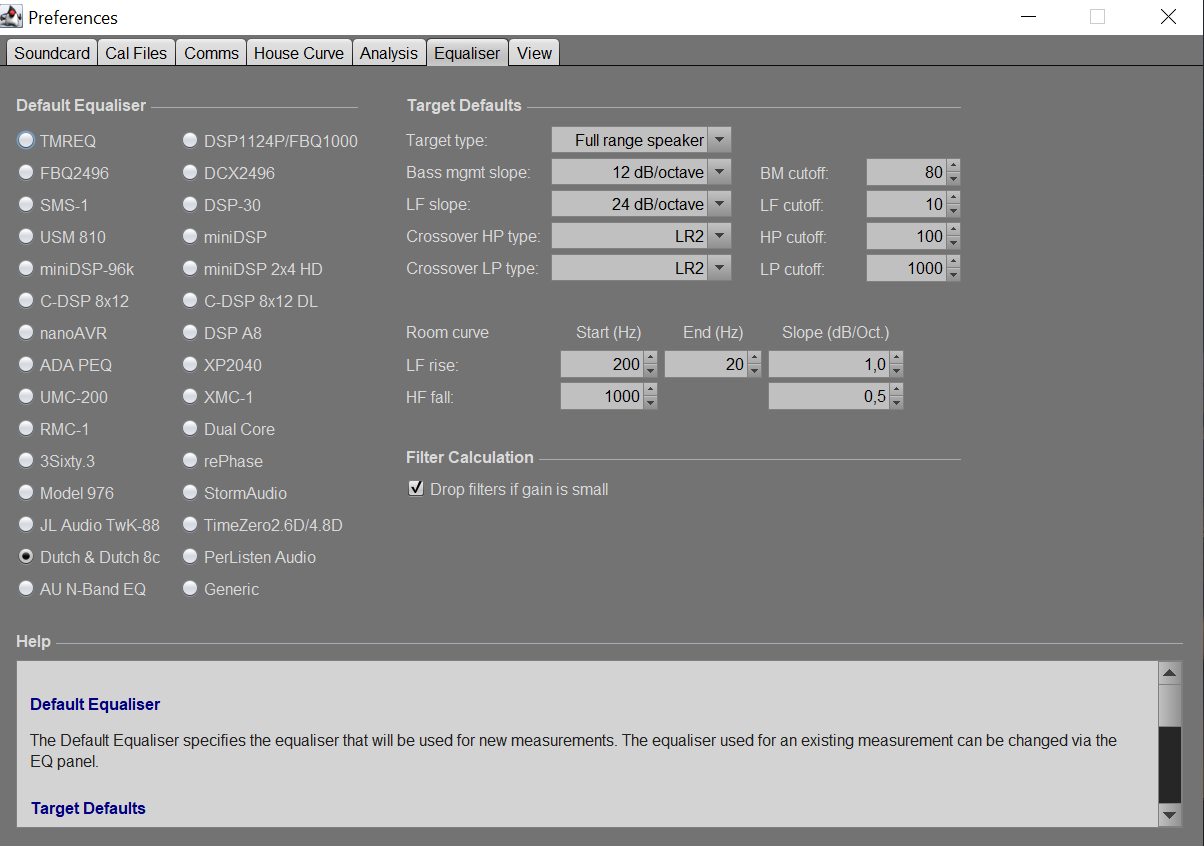 Итак, берем ПК, подключенный к той же сети — это важно. Далее открываем REW, идем в настройки и во вкладке Equalizer выбираем уже добавленный туда пресет Dutch & Dutch 8c.