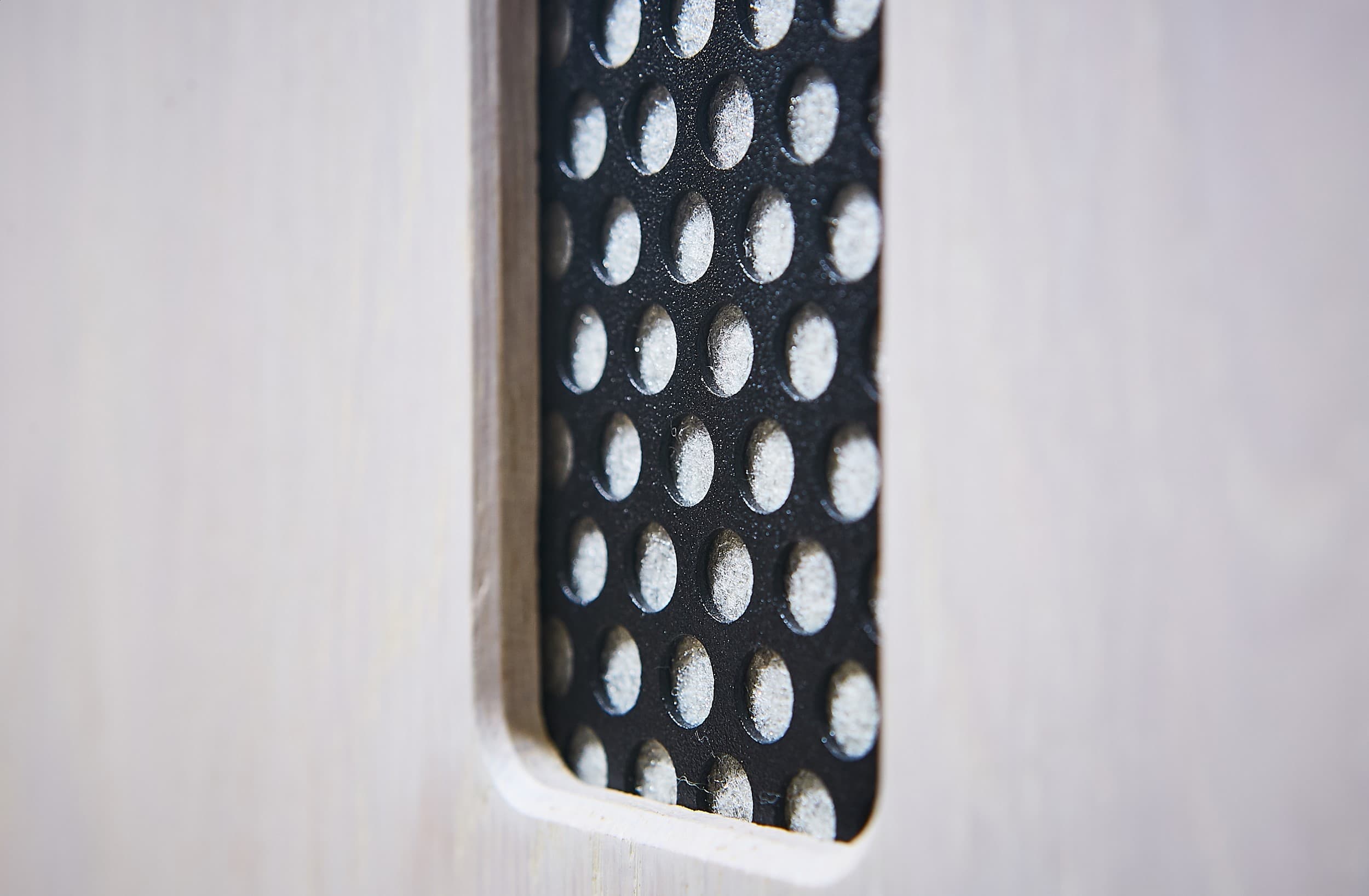 Попробуем кратко описать задумку разработчиков — буквально в паре-тройке абзацев. В «обычных» акустических системах звуковые волны, излучаемые задней частью диафрагмы динамика — явление нежелательное, с которым приходится как-то бороться. Вариантов тут несколько, простейший — размещения демпфирующих материалов внутри колонок. Создатели Dutch & Dutch 8c пошли другим путем: противофазный звук выходит из корпуса как раз через увиденные нами выше длинные вертикальные прорези.