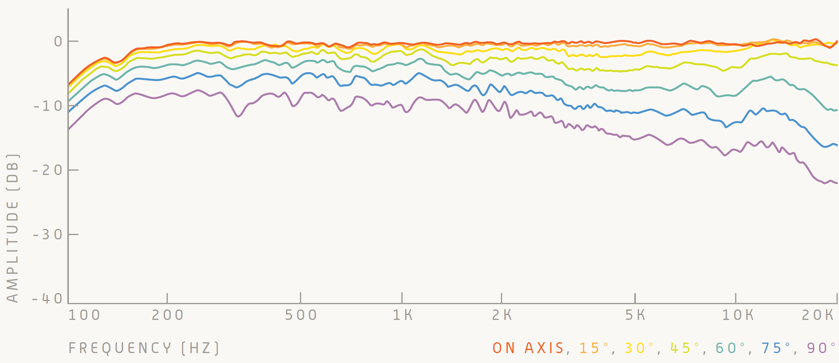 Словосочетание «кардиоидная направленность» мы больше привыкли слышать применительно к микрофонам. Здесь это значит нечто похожее: колонки направляют бо́льшую часть звука в среднечастотном диапазоне непосредственно вперед. Соответственно, пользователь получает больше свободы в плане размещения акустики — в частности, ее можно без опаски ставить возле стен.