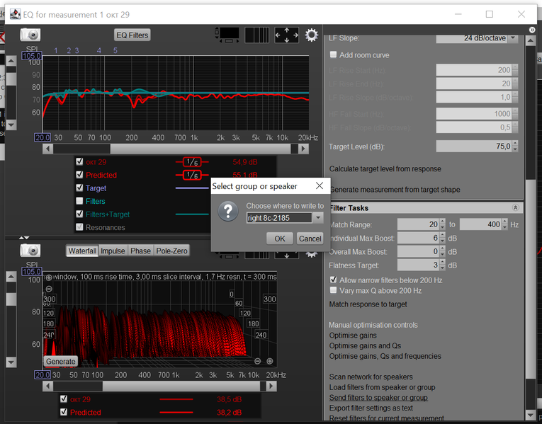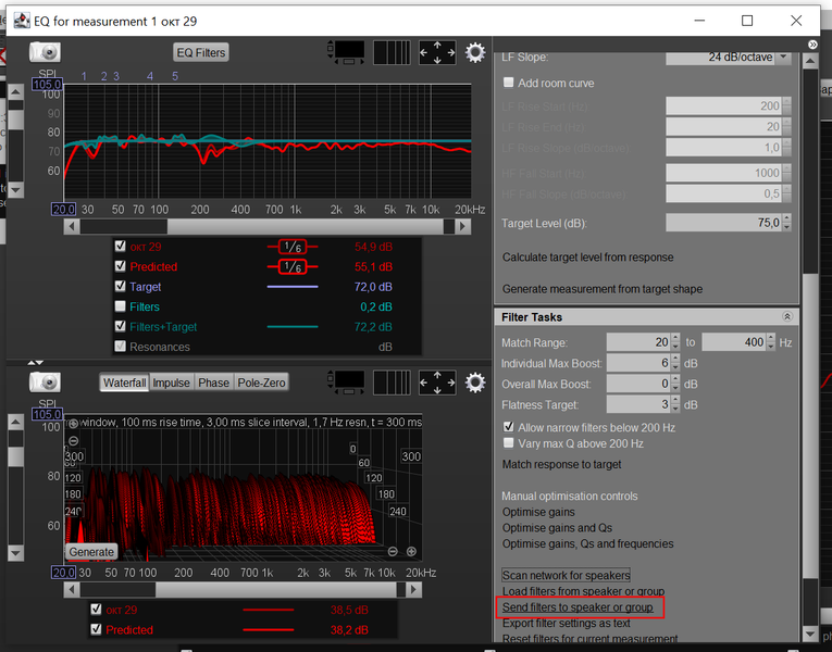 Выполняем измерения, получаем нужный нам фильтр, который можем отправить на устройство прямо из меню программы.