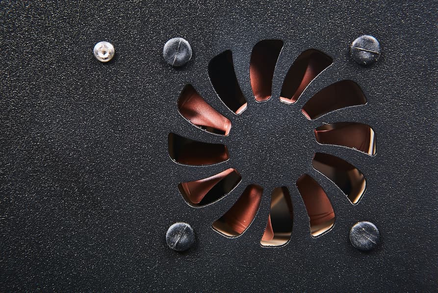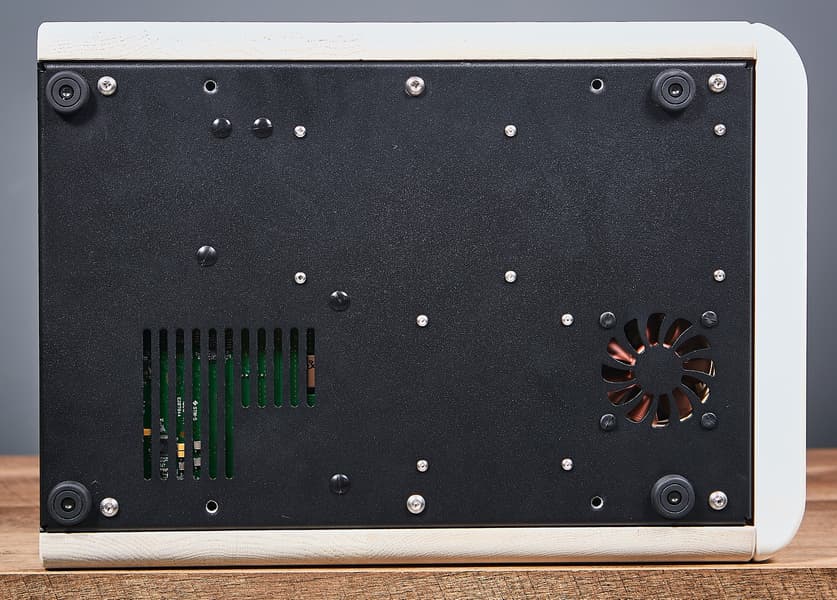 За еще одной серией прорезей расположен малошумный вентилятор, работу которого мы пытались услышать в ходе тестирования, но так и не смогли — прослушиванию музыки он уж точно не помешает.