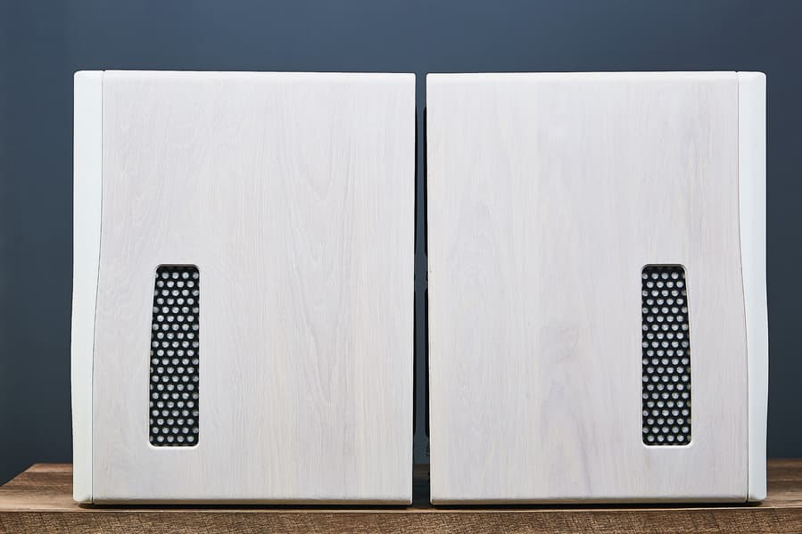 Дизайн у колонок очень эффектный, но размеры при этом для «полочников» сравнительно велики — 485×270×380 мм. Слишком громоздкими колонки при этом не выглядят. Напротив, они отлично вписываются в интерьер и смотрятся крайне органично, плюс из четырех вариантов цветового оформления можно выбрать подходящий под обстановку — для очень многих пользователей этот фактор крайне важен. Масса, кстати, тоже солидная — 26 кг. Передняя панель выполнена из ABS-пластика и имеет матовую фактуру, а соответственно — вполне устойчива к появлению отпечатков от прикосновений.