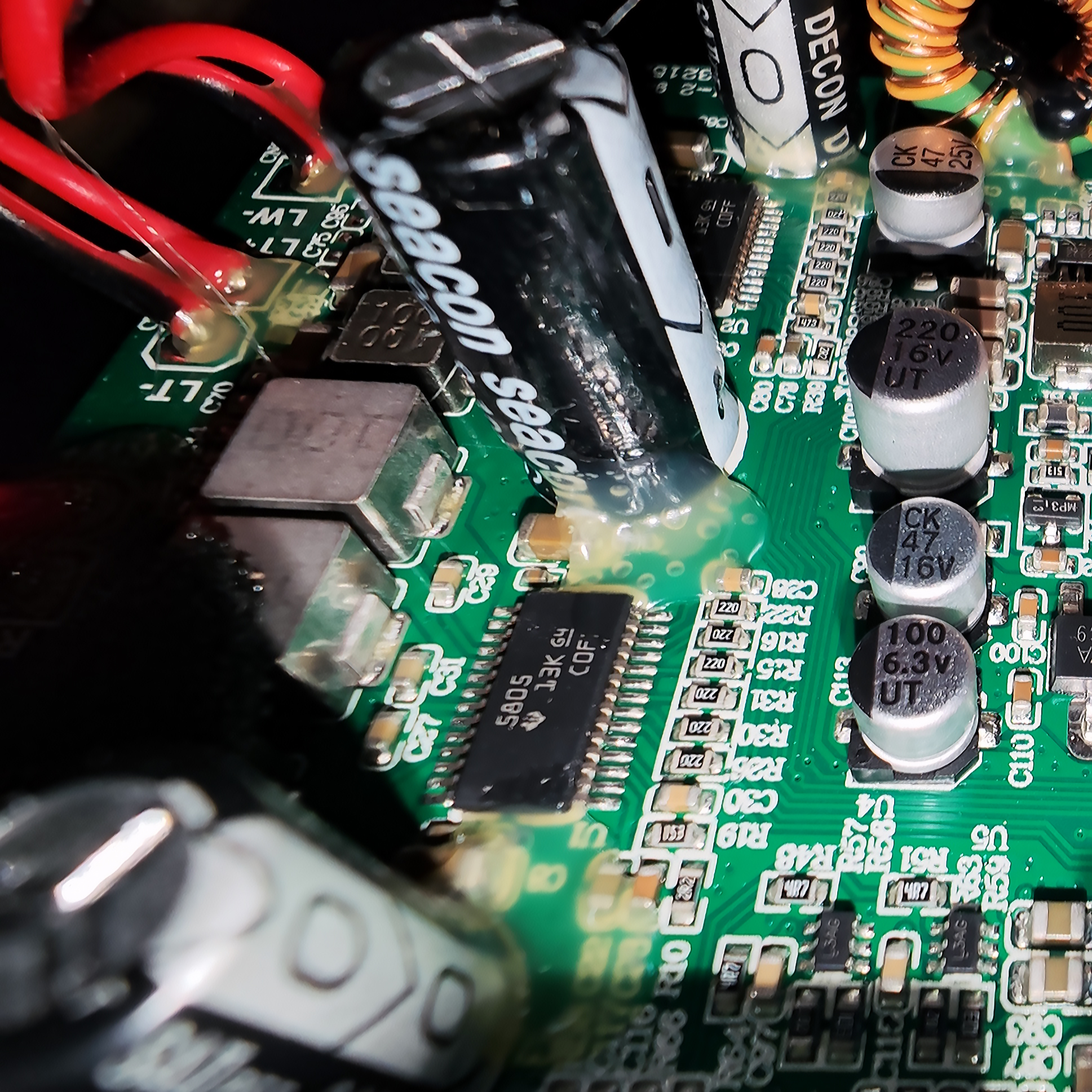 Почти по центру мы видим стабилизатор EH16A, правее него — еще один чип, прикрытый наклейкой, которую мы тут же отклеили.