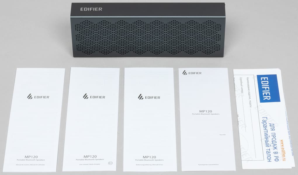 Компания Edifier продолжает активно осваивать рынок портативной беспроводной акустики. Недавно мы протестировали акустическую систему с Bluetooth-подключением Edifier D12 — компактную, но все же рассчитанную на домашнее использование. Сегодня же посмотрим на совсем небольшую, более того — практически карманную колонку. Масса Edifier MP120 — всего 100 г, а размеры — 170×60×26,5 мм. Корпус при этом выполнен из алюминия и обладает стильным минималистичным дизайном. Помимо Bluetooth-подключения колонка поддерживает проводное, а также оснащена встроенным плеером, способным воспроизводить аудиофайлы с карт microSD. И всю эту красоту производитель предлагает по далеко не самой высокой стоимости. Внешний вид, заявленные характеристики и цена нас уже впечатлили — осталось посмотреть, как устройство покажет себя в эксплуатации.