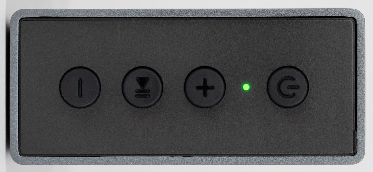 Управление осуществляется с помощью четырех кнопок на правой панели. Ближе к одному из краев размещен небольшой светодиодный индикатор, меняющий цвет в зависимости от активного подключения: