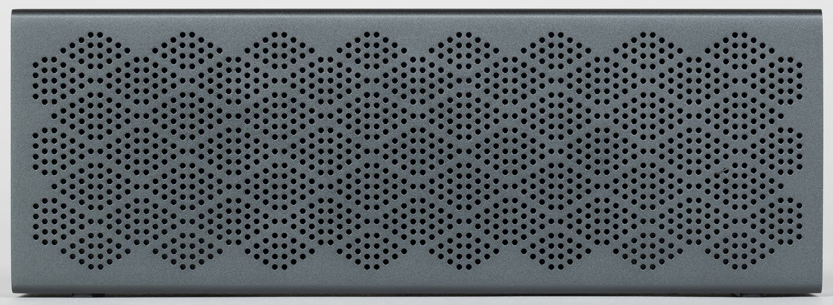 Корпус Edifier MP120 выполнен из алюминия и покрашен в темно-серый цвет. Выглядит он строго, но при этом очень стильно — на уровне так называемых «премиальных продуктов». Торцы пластиковые, на левом размещена панель с разъемами.