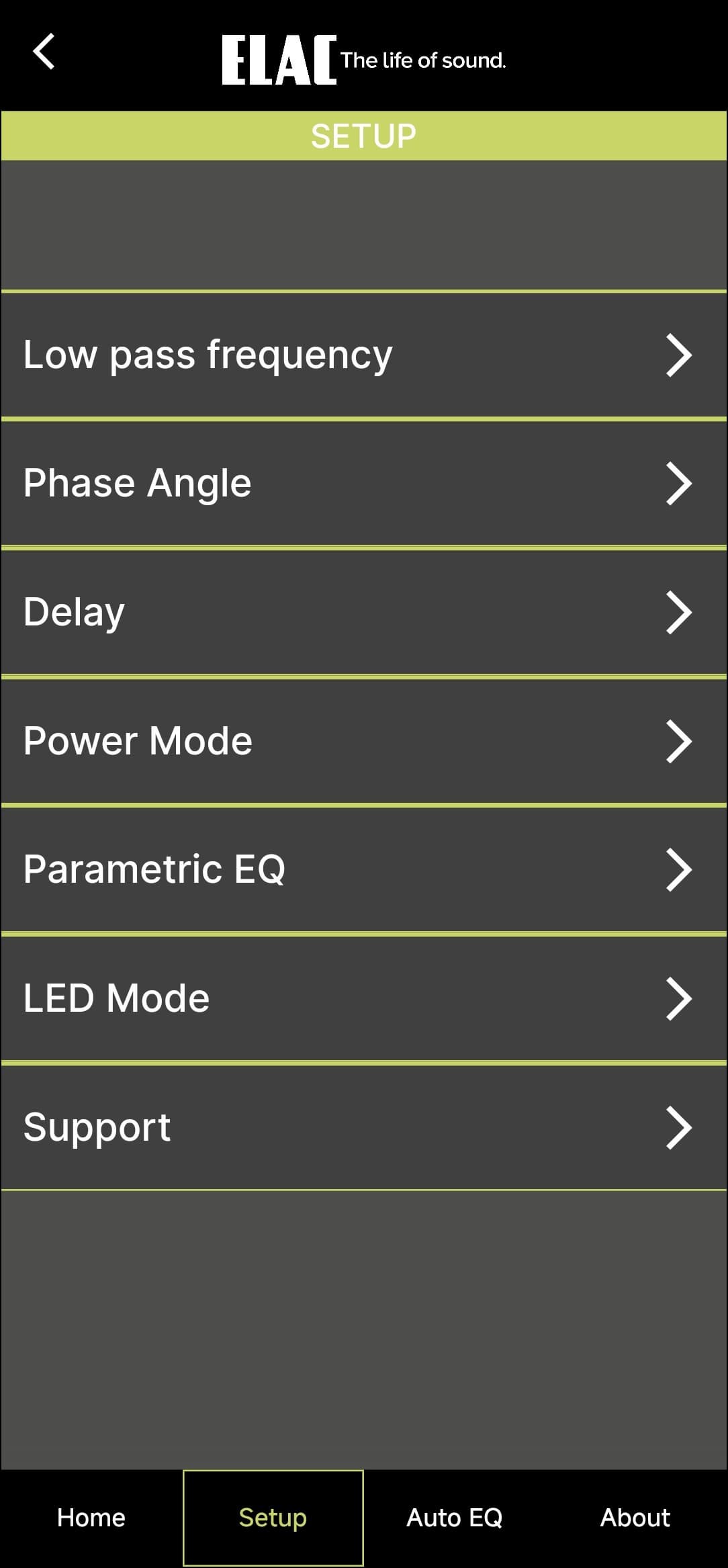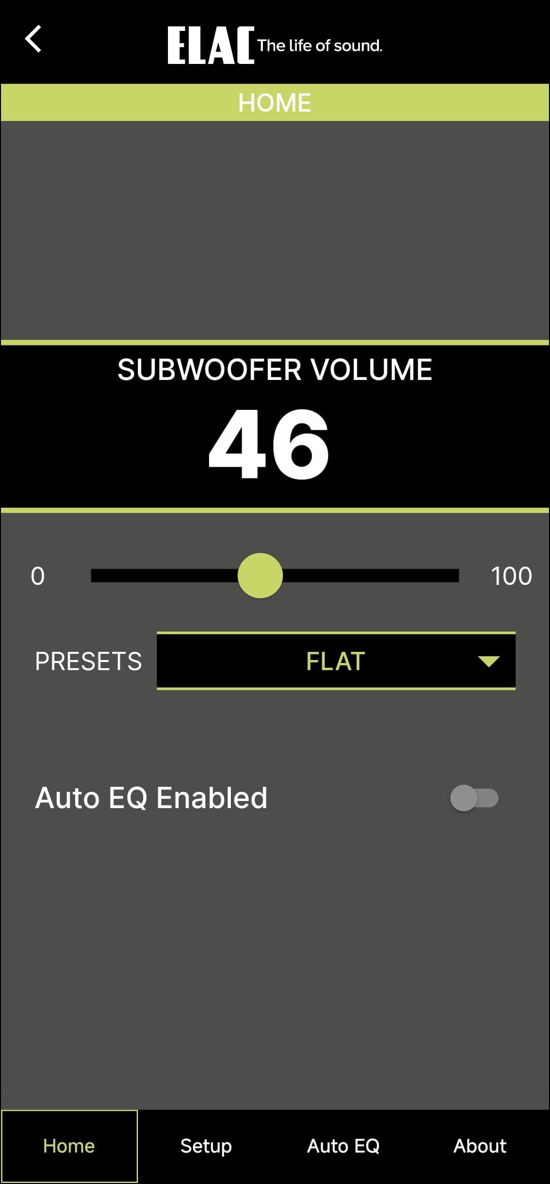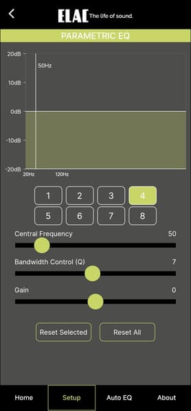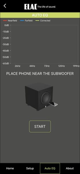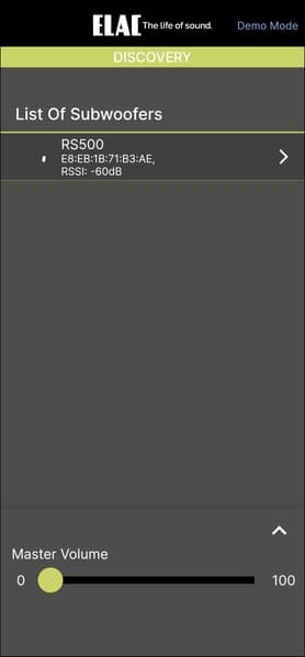 Настройка и управление Elac Varro Reference RS500 осуществляются через приложение Elac Sub Control — без него тут никуда. Доступно оно для гаджетов под управлением Android и iOS, мы тестировали андроид-версию.
