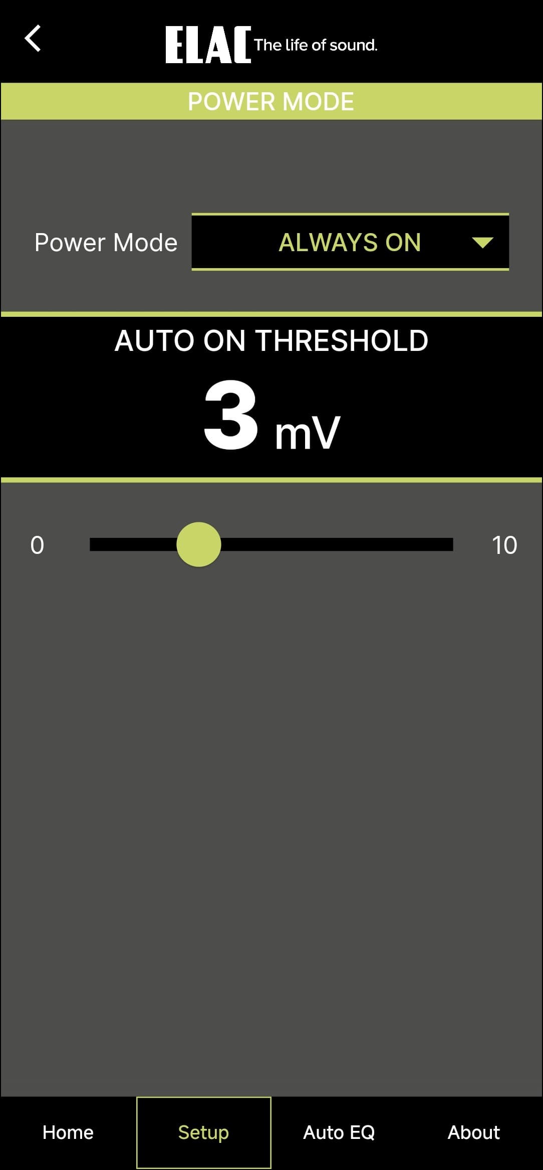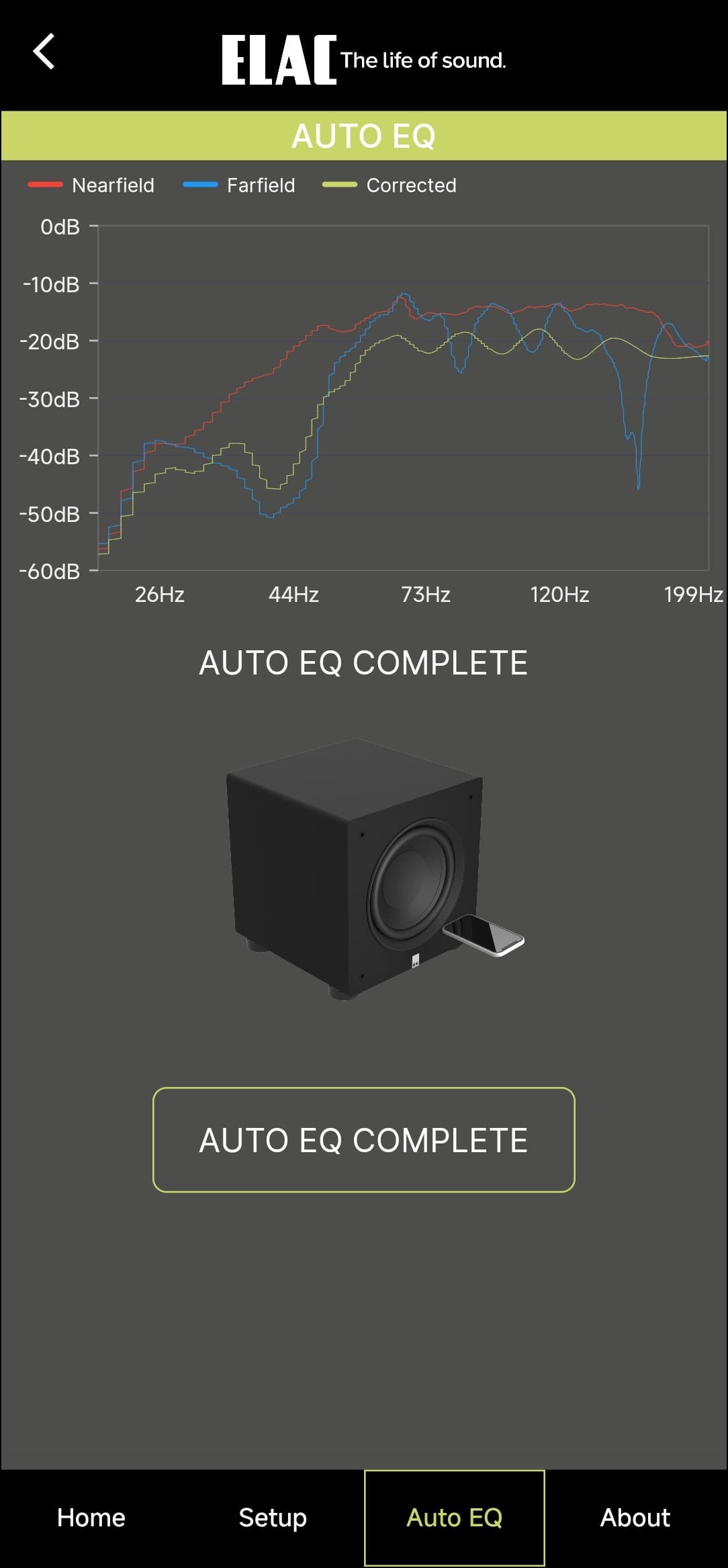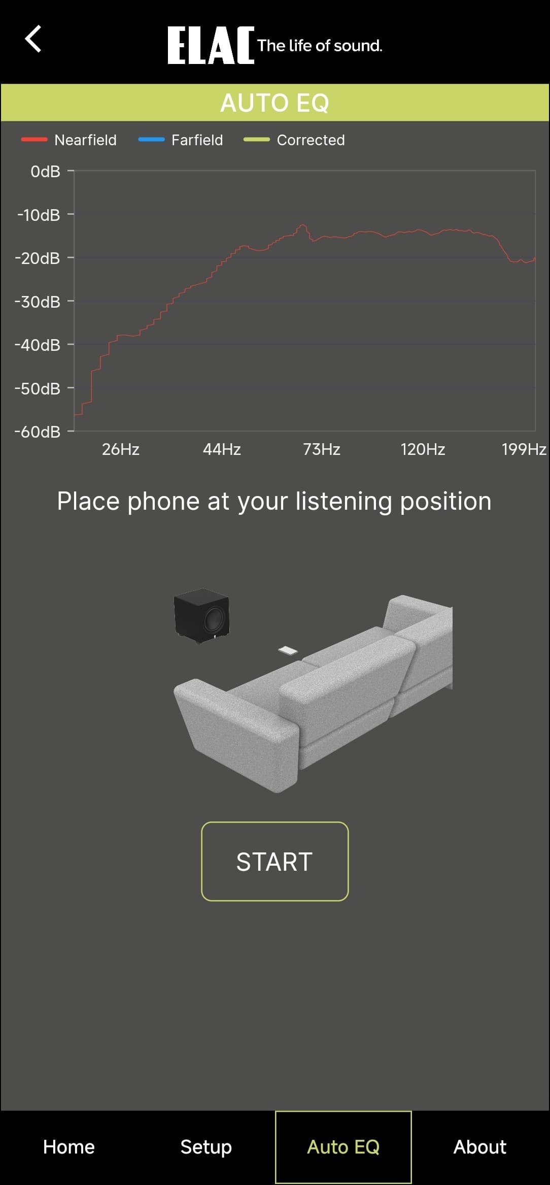 Настройка и управление Elac Varro Reference RS500 осуществляются через приложение Elac Sub Control — без него тут никуда. Доступно оно для гаджетов под управлением Android и iOS, мы тестировали андроид-версию.