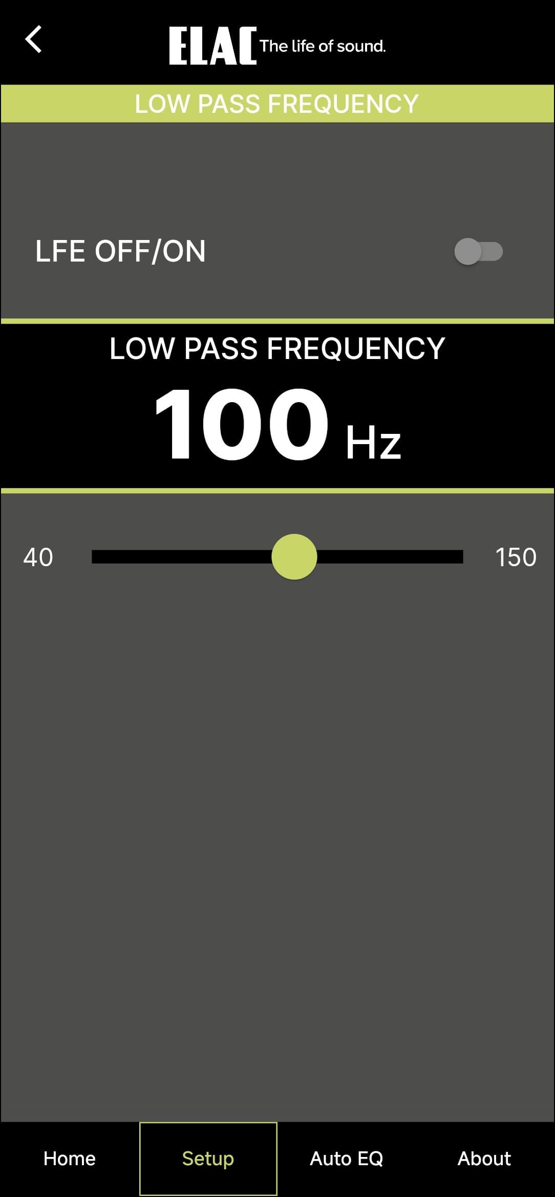 Как мы увидим ниже, у Elac Varro Reference RS500 есть замечательная система автокалибровки под помещение, но крайне многое можно сделать и в ручном режиме, что замечательно — как минимум, все описанные ниже опции пригодятся для согласования работы сабвуфера и другой присутствующей в системе акустики. Первым делом можно настроить кроссовер — частота среза может меняться в широких пределах от 40 до 150 Гц. Плюс возможно его отключение (режим LFE), если источник подает уже подготовленный низкочастотный сигнал.