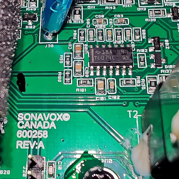 Маркировка на некоторых трансформаторах и операционных усилителях все же видна, ну и теперь мы знаем, что к производству платы причастна компания Sonavox.