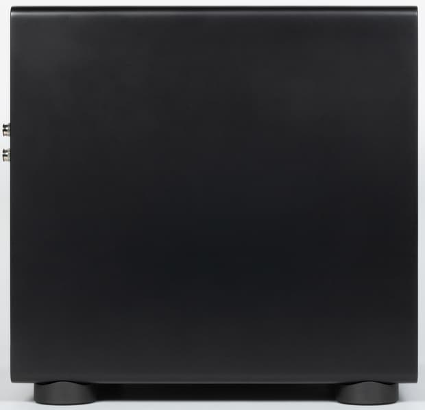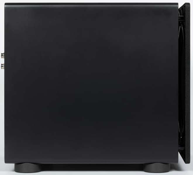 На боковых стенках ничего особо интересного — просто матовая поверхность. Которая, кстати, несмотря на свою матовость легко покрывается пятнами от прикосновений и в целом крайне неустойчива к загрязнениям. К счастью, постоянно трогать сабвуфер нет совершенно никакой необходимости, а пыль удаляется с него легко.