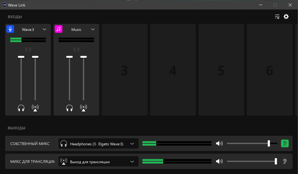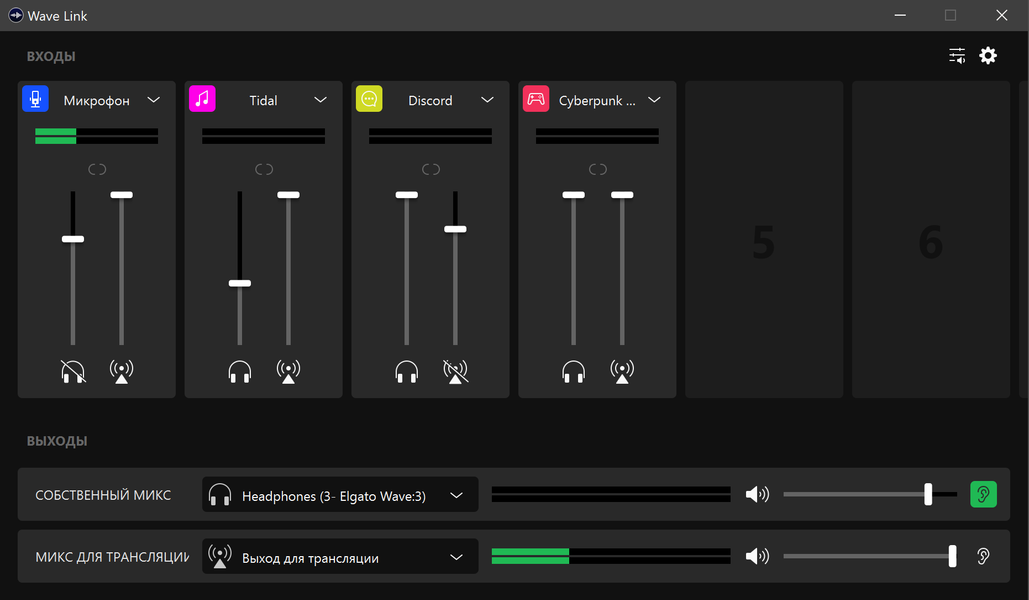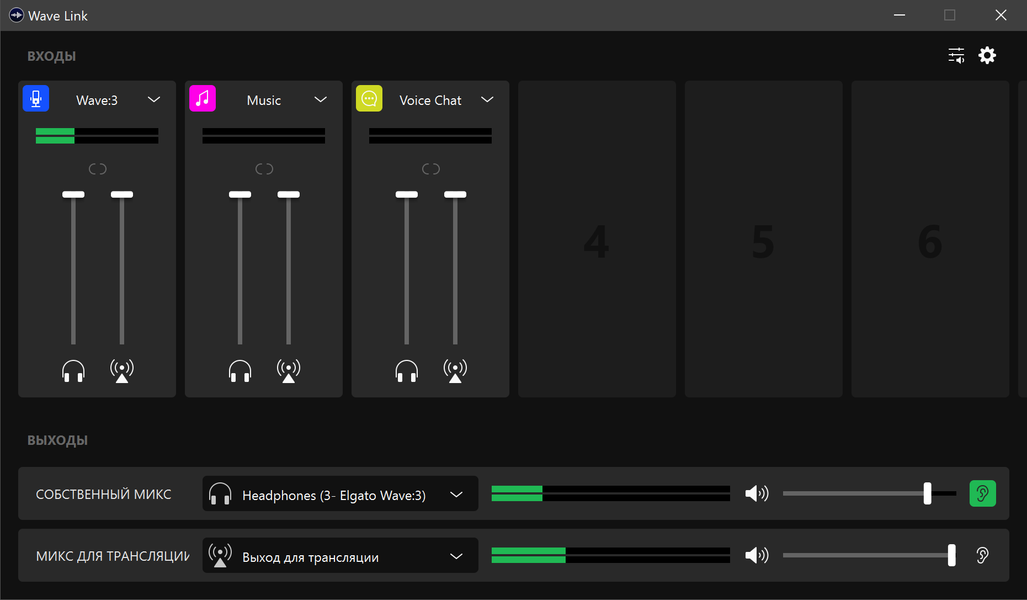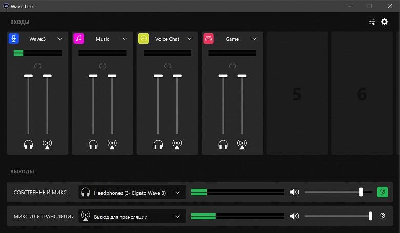 Неопытному пользователю первоначальная настройка может показаться немного сложной, но на деле все очень просто и понятно. Профессиональные виртуальные микшеры обладают гораздо более серьезным набором функций, чем Wave Link. И вот их настройка действительно может вызвать ряд вопросов. ПО же Elgato прекрасно как раз тем, что в нем есть все необходимое для разного рода контентмейкеров, но при этом нет ничего лишнего. В итоге и настраивается всё быстро, и в работе максимально просто и удобно. Первым делом устанавливаем программу и видим главное окно, из которого осуществляется всё управление звуком трансляции или записи.