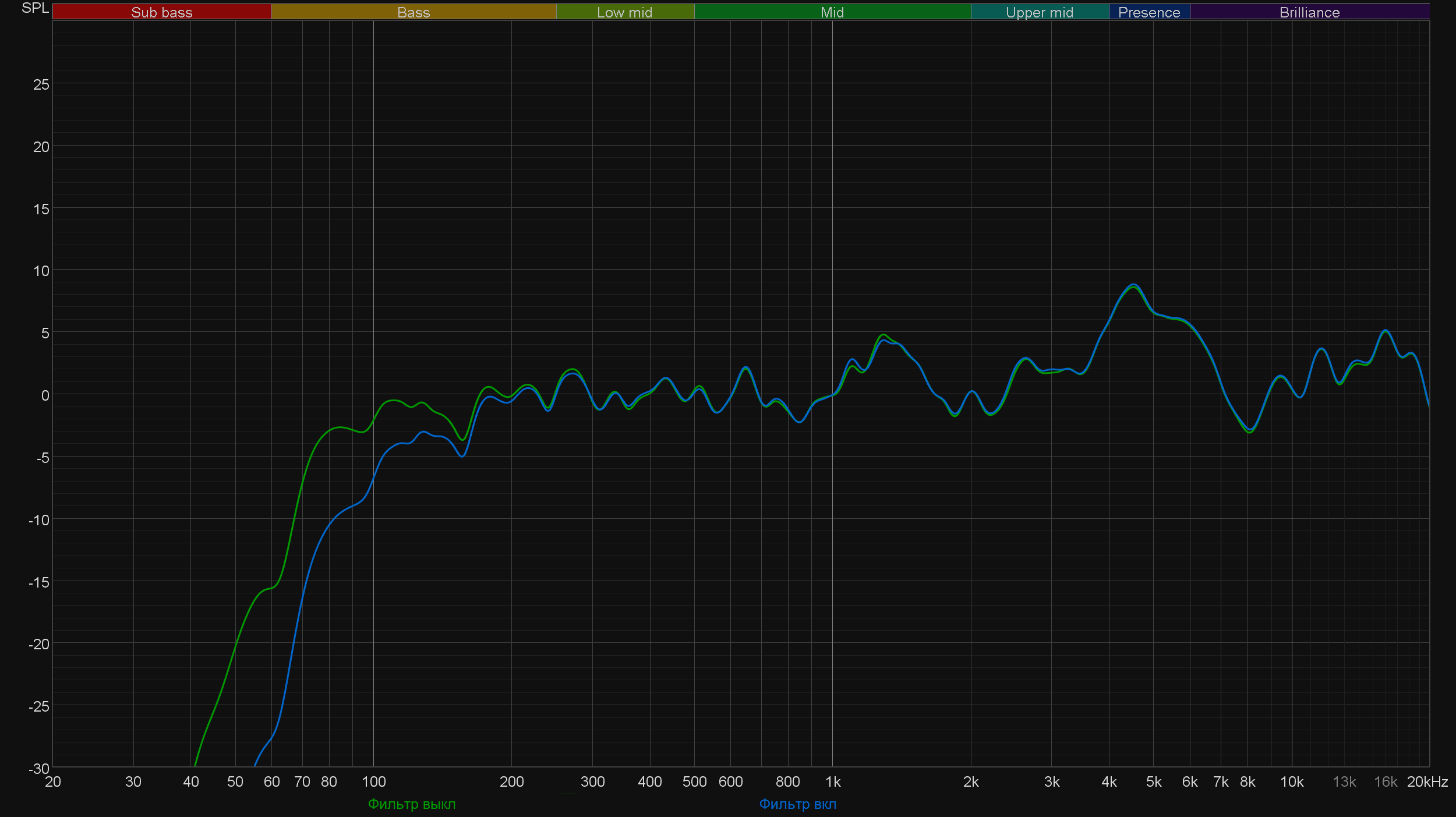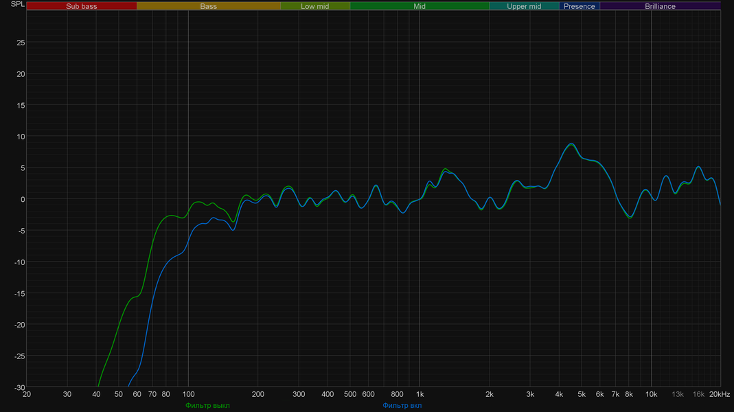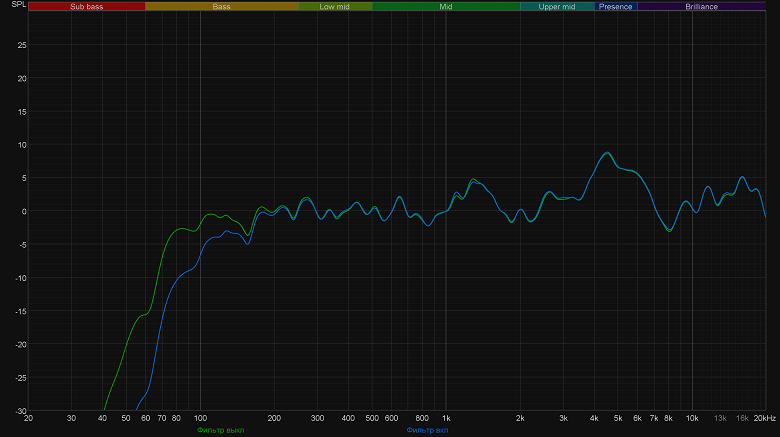 В общем, звуковой профиль полностью соответствует сфере применения, заявленной производителем — стриминг и запись подкастов микрофону явно удадутся хорошо. Пример записи голоса с помощью Elgato Wave 3 можно найти в видеообзоре ниже. Ну и под конец посмотрим, как срабатывает фильтр низких частот, о котором мы говорили выше. Ровно так, как мы и ожидали — он заметно, но все же достаточно деликатно понижает уровень частот ниже 150 Гц. В остальном профиль остается без изменений, что замечательно.