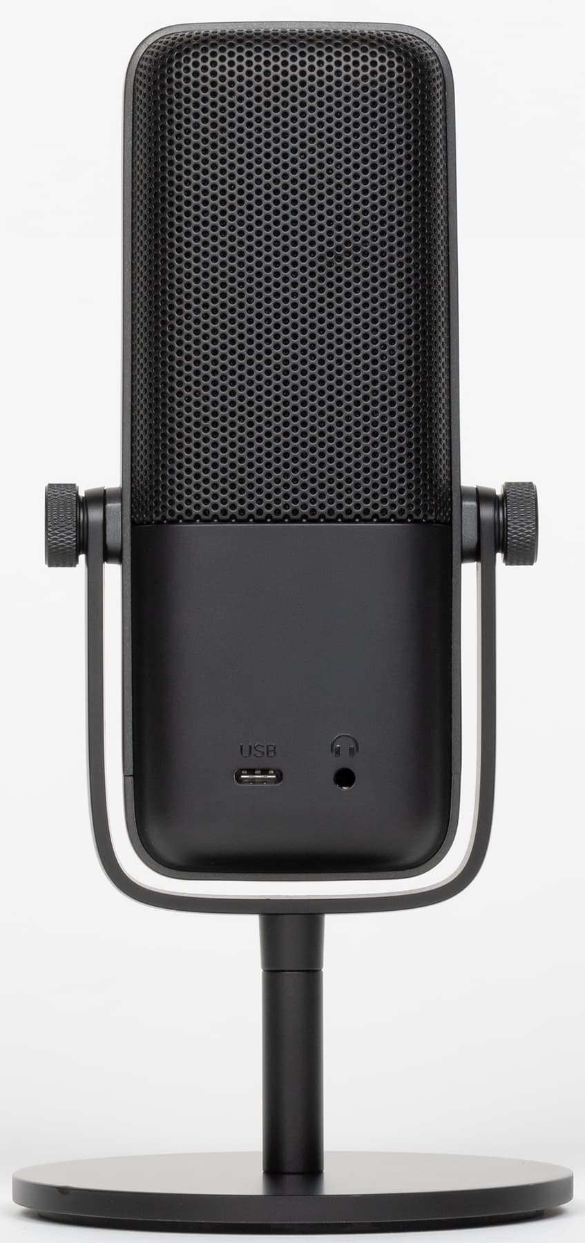 Подключение микрофона осуществляется через порт USB-C с помощью комплектного кабеля, дополнительного питания не требуется — все очень легко и просто. По желанию можно также подключить наушники для мониторинга. А вот дальше микрофон нужно как-то разместить для дальнейшей работы — тут все гораздо интереснее. Комплектная стойка крайне устойчива и прекрасно справляется со своей функцией — можно использовать и ее, но есть нюансы.