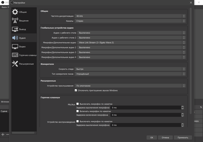 Почти все готово, остается выбрать выход микса для трансляции под названием Wave Link Stream в качестве источника звука в используемом для стриминга или записи приложении — в нашем случае это была OBS Studio. На этом этап первоначальной настройки окончен.