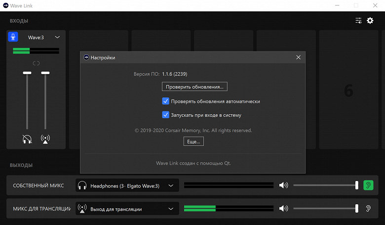 Конечно, Wave 3 управляется с помощью контроллеров Stream Deck. Проверить это у нас возможности не было, но в удобстве этого решения особых сомнений нет. Ну и наконец, заглянем в собственное меню микрофона в приложении.