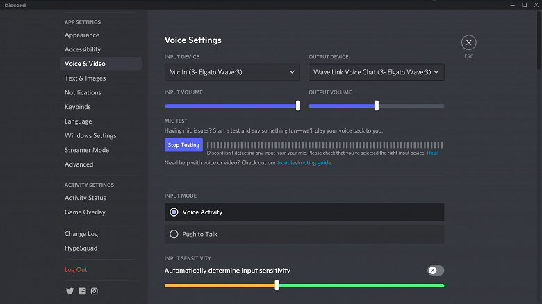 Теперь добавим голосовой чат — Discord. В качестве источника голоса выбираем наш микрофон, в качестве выхода — Wave Link Voice Chat.