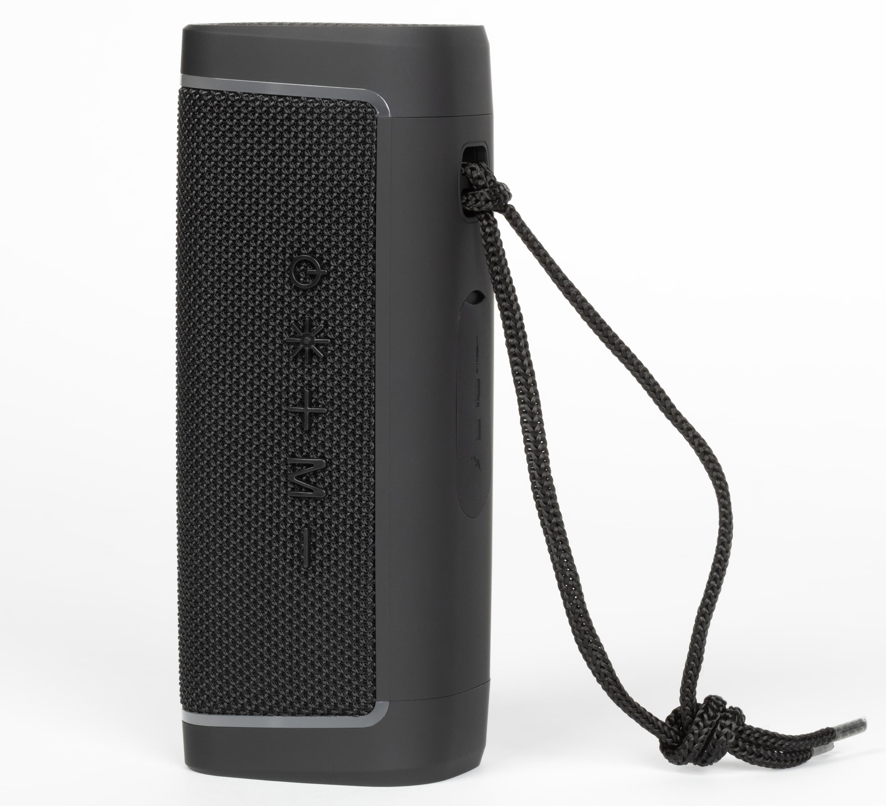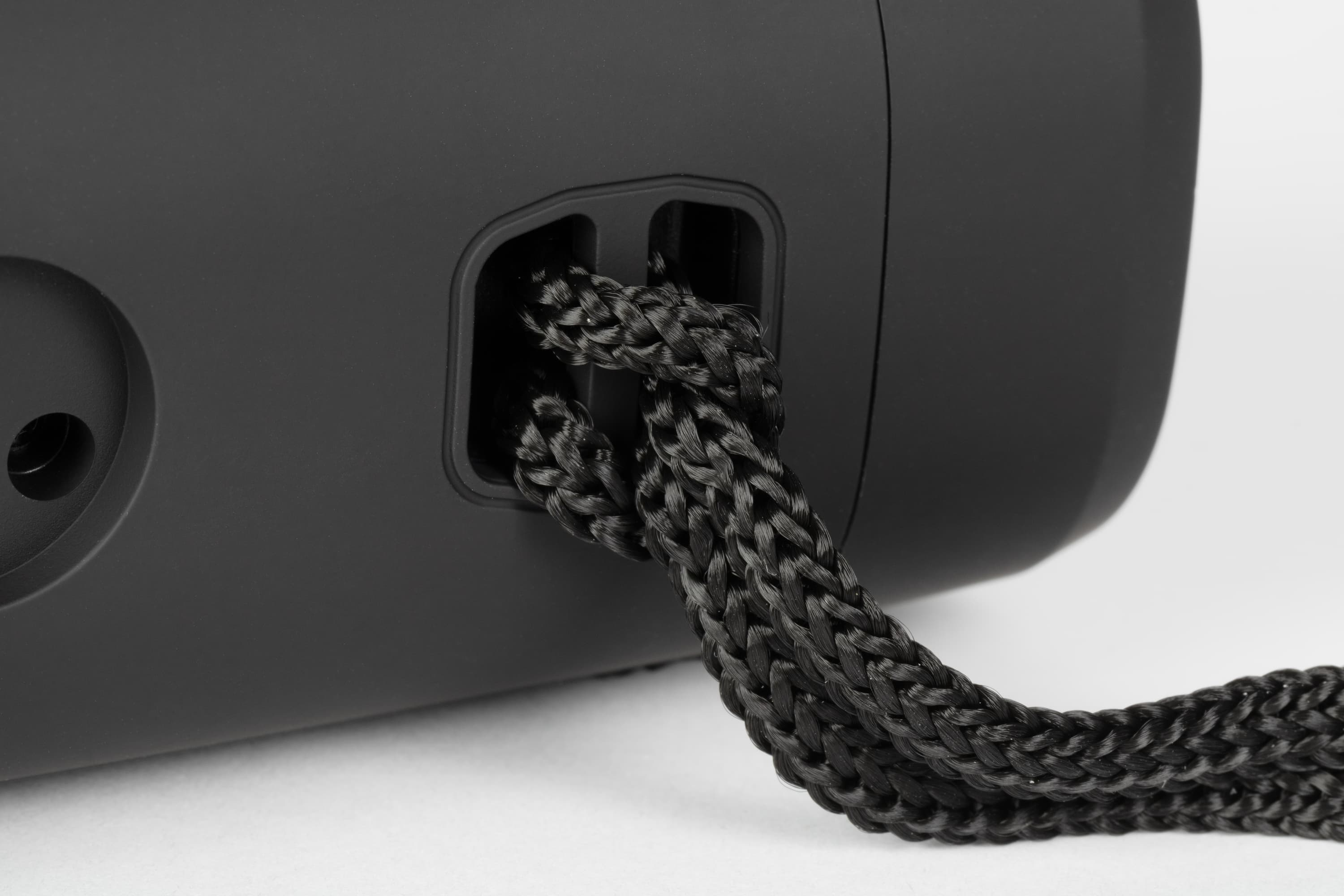 С установленной петлей колонка сохраняет аккуратный вид. Ее можно повесить на запястье или закрепить на ветке дерева, например.