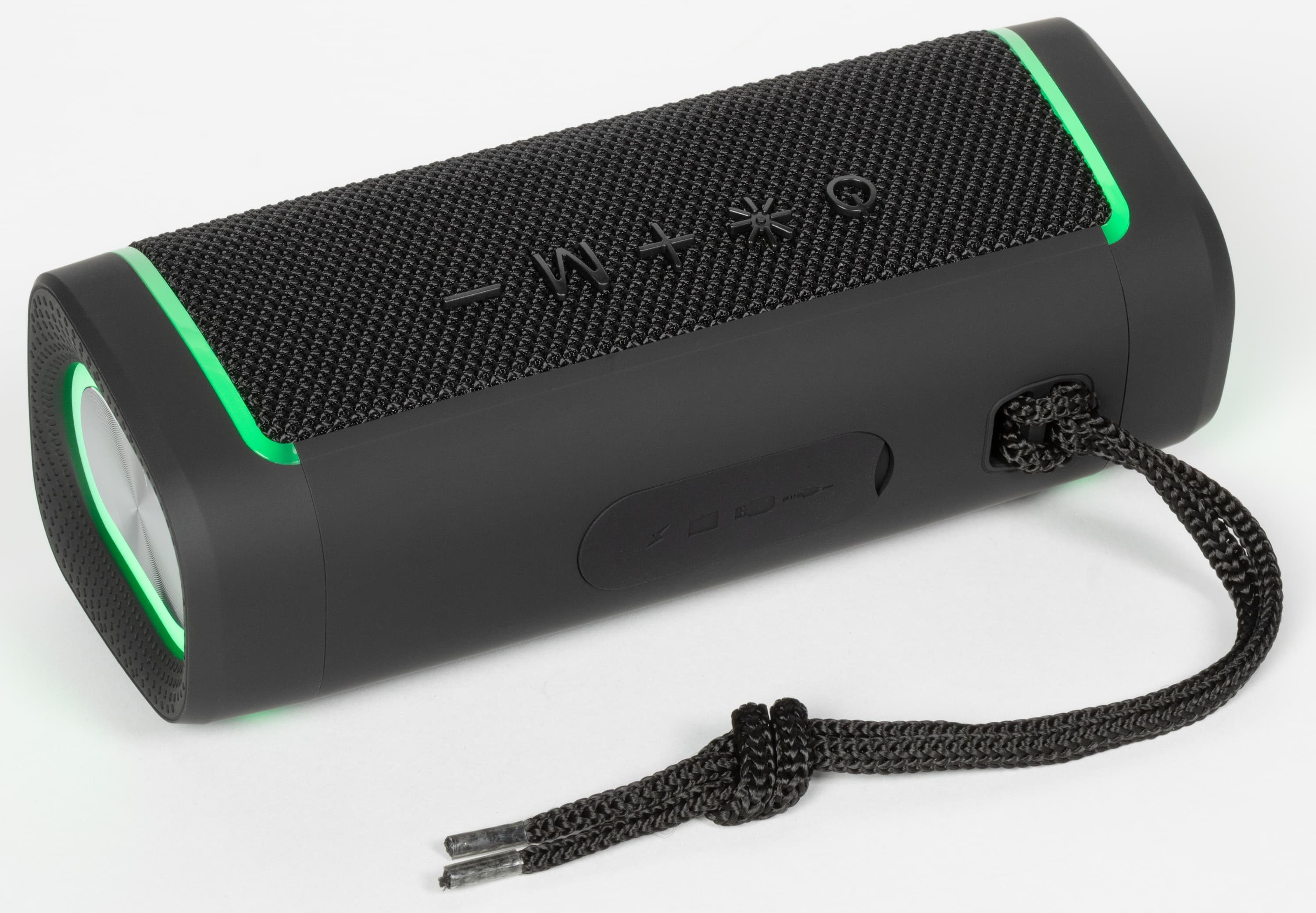 Что касается автономности, колонка работает даже дольше заявленного — больше двух часов на средней громкости без подсветки. С включенной подсветкой и громкостью повыше автономность достигает примерно обещанных двух часов.