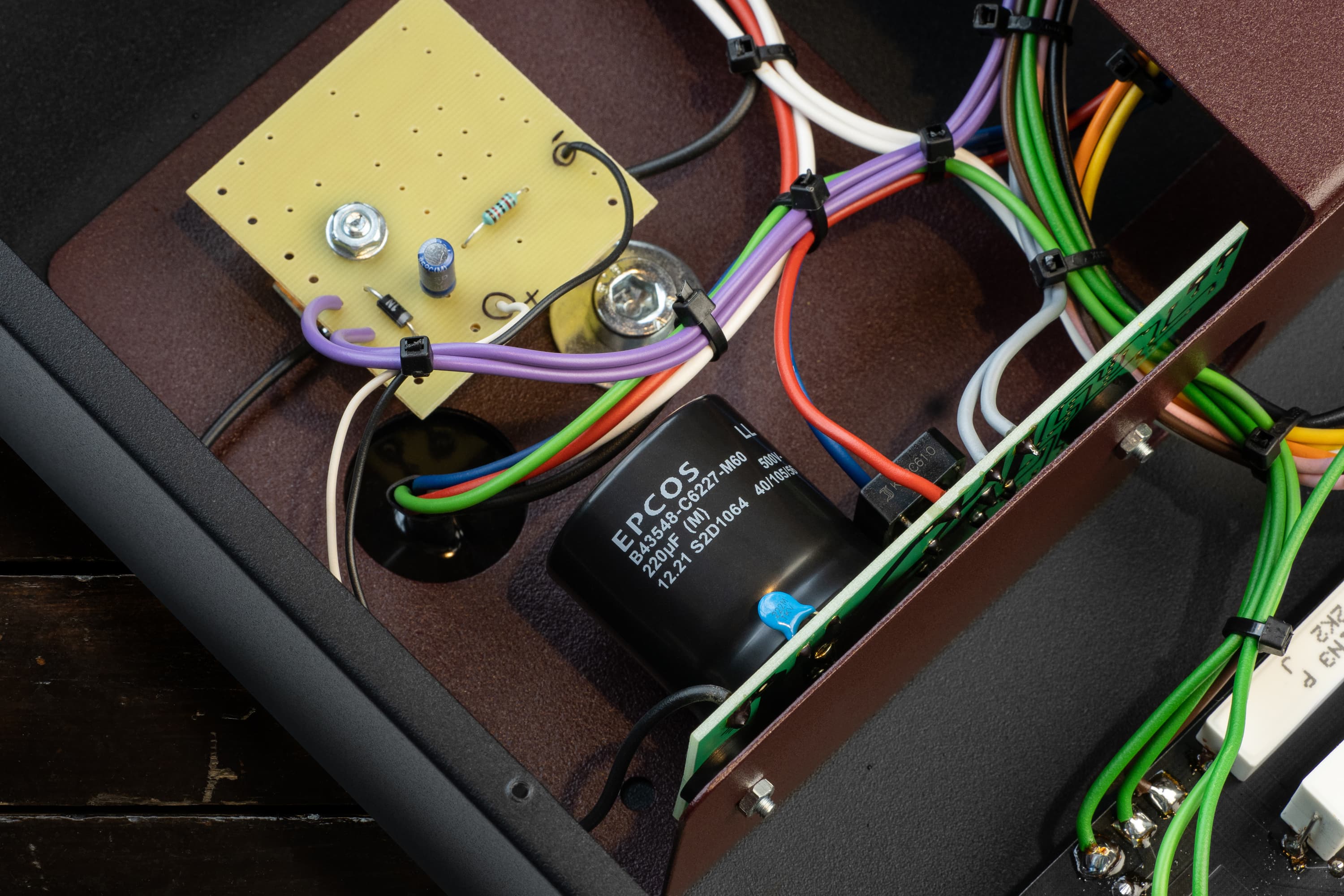 Подбор компонентов предсказуемо ничем не отличается от того, что мы видели у «интегрального собрата». Конденсаторы — немецкой Electronic Parts and Components...