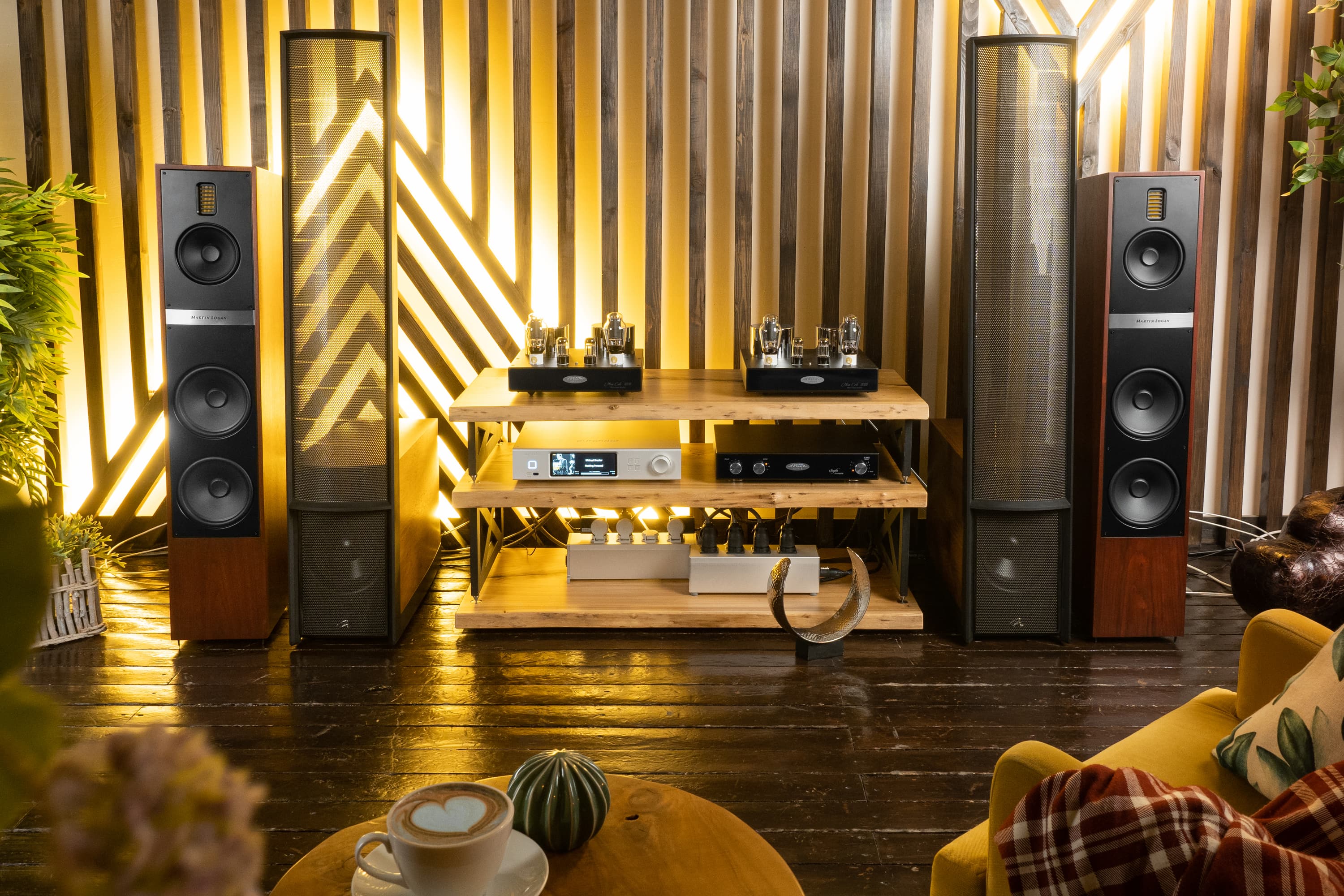 Усилители Fezz Audio мы уже традиционно тестируем сразу с двумя хорошо знакомыми нам комплектами акустики Martin Logan: один с «классическими» динамиками, а второй — с электростатическими излучателями. В качестве предусилителя для пары Mira Ceti 300B Mono Power был задействован Fezz Audio Sagita. В итоге наш сетап выглядел следующим образом: