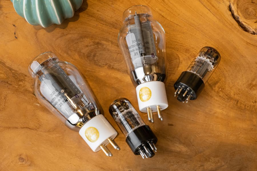 Ламп, как уже упоминалось выше, две пары: 300b работают в связке с 6sn7. Традиционно используются лампы бренда Electro Harmonix, которые производятся на заводе New Sensor, созданном на базе предприятия «Рефлектор» в Саратове.