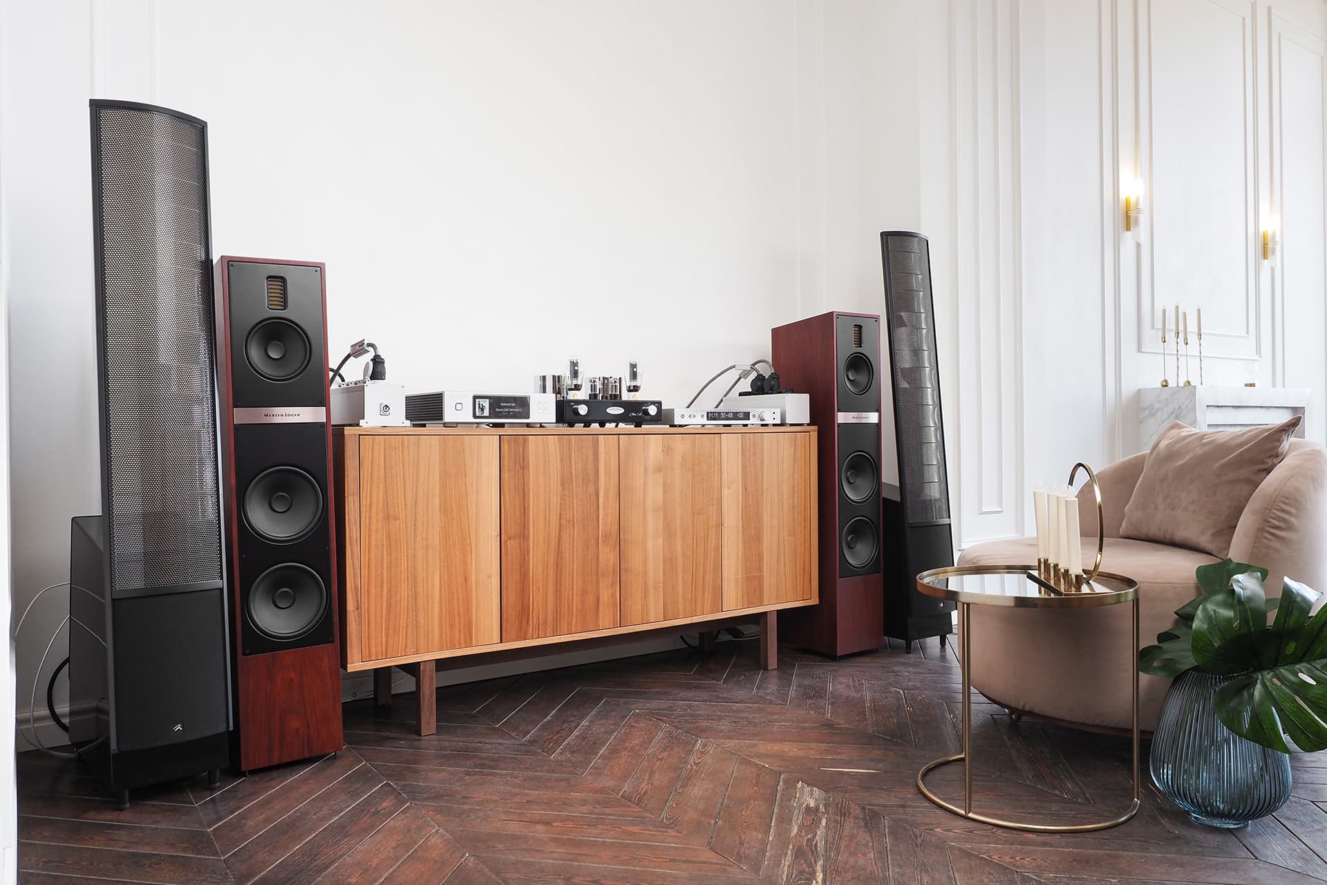 Fezz Audio Mira Ceti помимо основной модификации, комплектуемой лампами 300В, имеет дополнительную — построенную на выходных лампах 2А3, которые тоже обладают солидной историей применения и весьма интересны. Достаточно сказать, что их устанавливали в органы Хаммонда, например. Однако мы решили сосредоточиться на легендарных 300В, а свой экспериментаторский азарт направить в другом направлении — попробовать послушать усилитель сразу с двумя хорошо знакомыми нам комплектами акустики Martin Logan, один из которых — с электростатическими излучателями. В итоге наш сетап выглядел следующим образом: