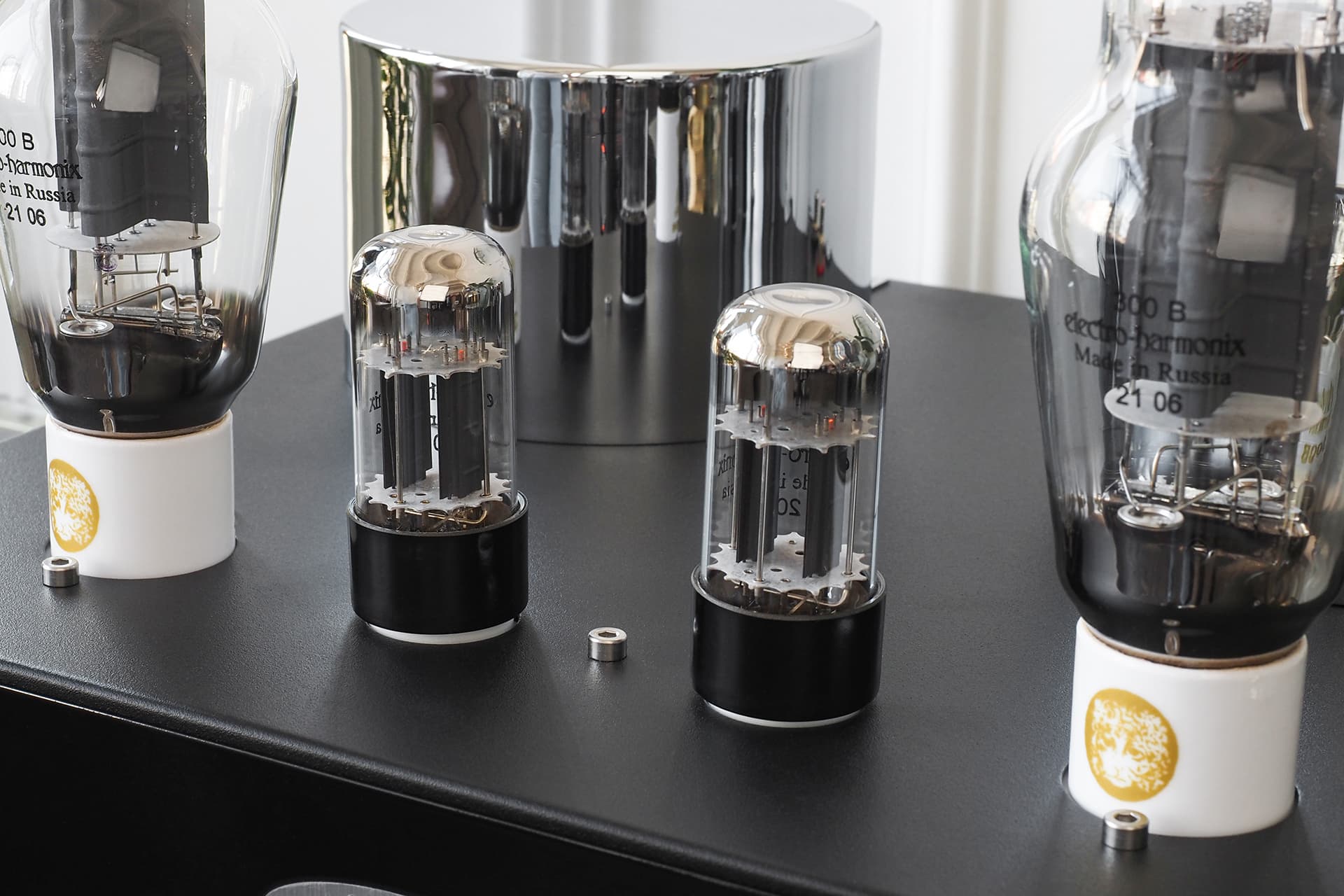 Лампы у Mira Ceti просто крайне примечательные, можно даже сказать «культовые» — 300В, разработанные американской компанией Western Electric в 1938 году и изначально использовавшиеся в устройствах для профессионального применения: усилителях в кинотеатрах, авиационных радиопередатчиках и так далее. Лампа получилась надежной, качественной и вообще замечательной, вот только дороговатой для применения в потребительской технике. Но, как известно, цена останавливает далеко не всех поклонников хорошего звука, потому 300В до сих пор популярны и удерживают звание «лучшего низкочастотного триода всех времен».