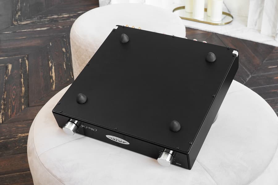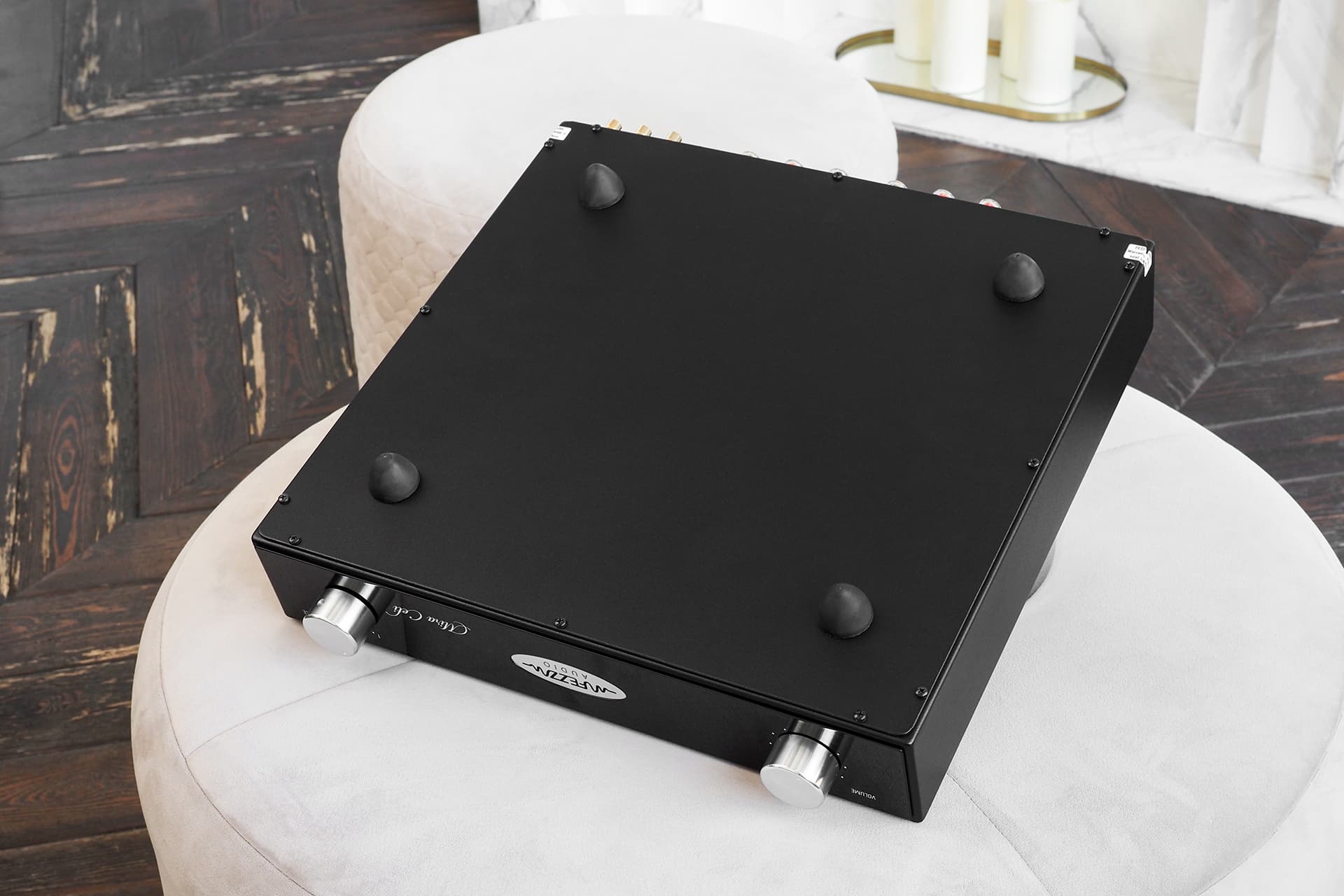 Как и большинство усилителей Fezz Audio, Mira Ceti поставляется в четырех цветовых вариациях: bleach (белая), big calm (бордовая), black ice (черная), burning red (красная). Белый и красный усилители мы уже видели, на этот раз решили остановиться на строгом и элегантном черном варианте.