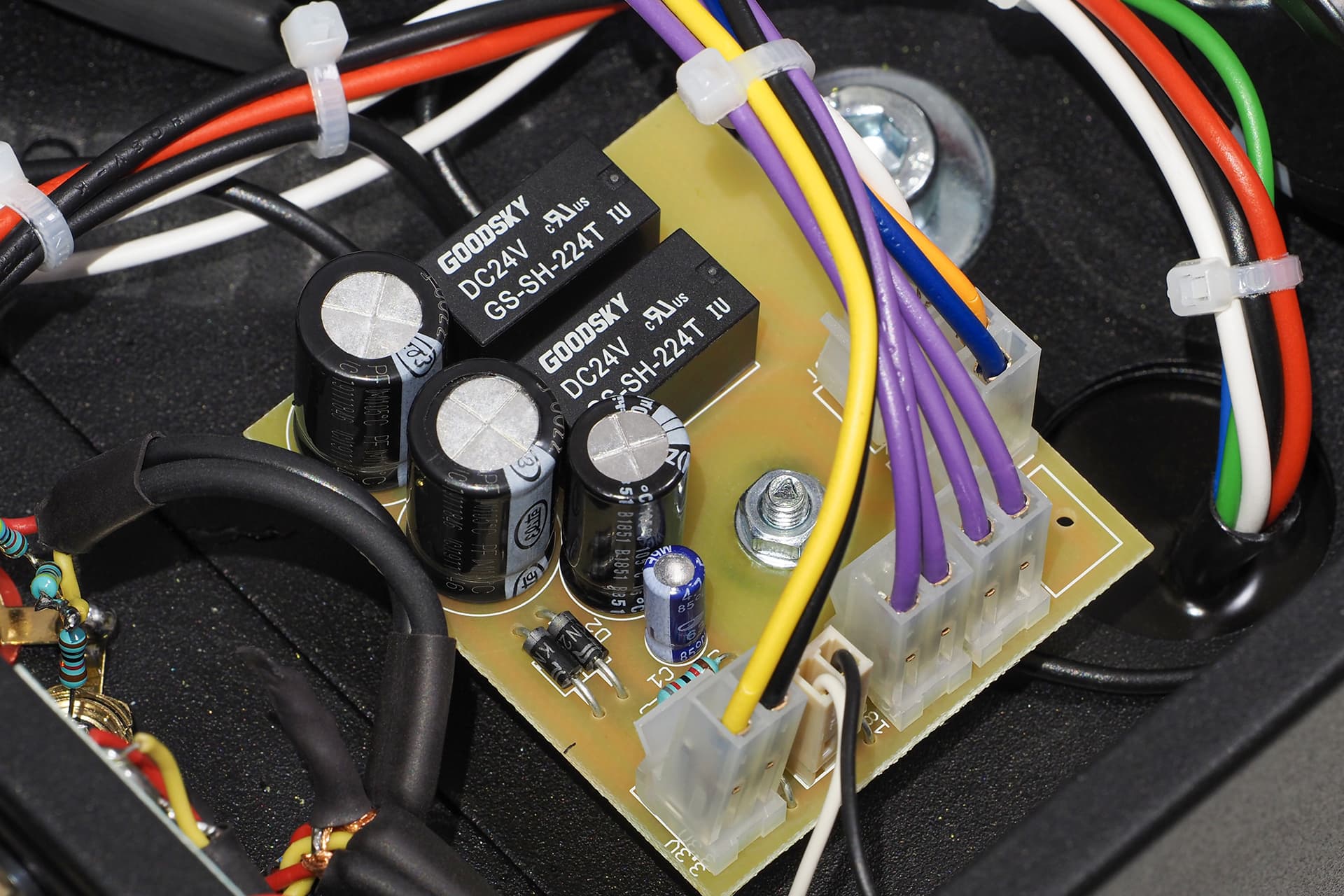 Компоненты подобраны традиционно «топовые и аудиофильские». Конденсаторы — немецкой Electronic Parts and Components и японской Nichicon, электромагнитные реле — основанной в 1989 году тайваньской Goodsky… Ну и так далее.