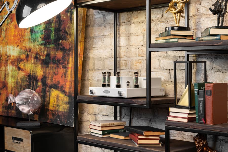 Начнем знакомство с брендом мы с одного из самых «продвинутых» и универсальных усилителей в линейке — Fezz Audio Silver Luna Prestige. Помимо качественных компонентов он интересен тем, что дает своим владельцам широкое поле для экспериментов — поставляется сразу с двумя наборами драйверных ламп, да еще и имеет переключатель режимов тетрод/пентод.