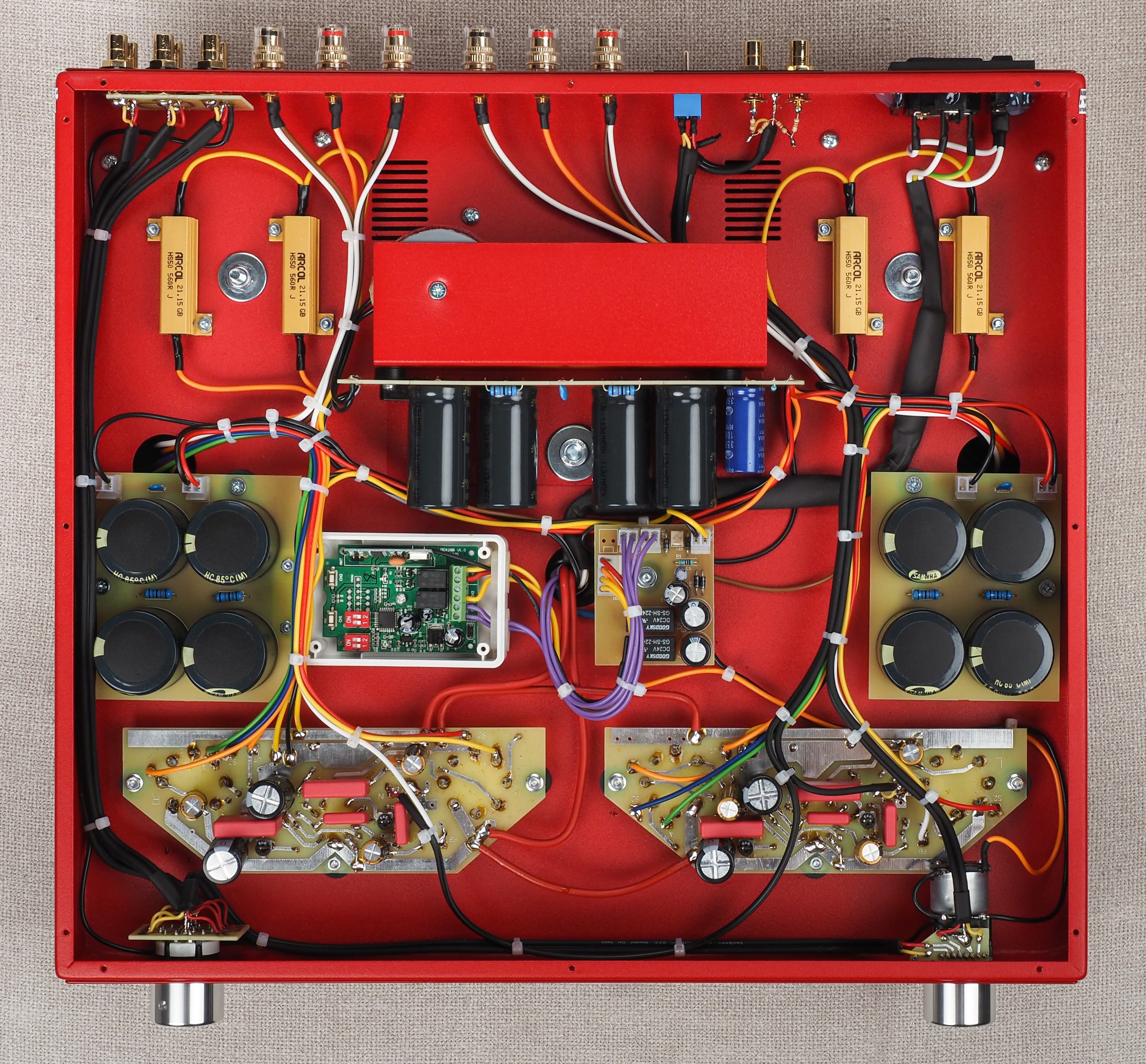 Нельзя не заметить и резисторы в алюминиевом корпусе Arcol — английской компании, специализирующейся на производстве именно этих компонентов и считающейся чуть ли не самой опытной в отрасли.