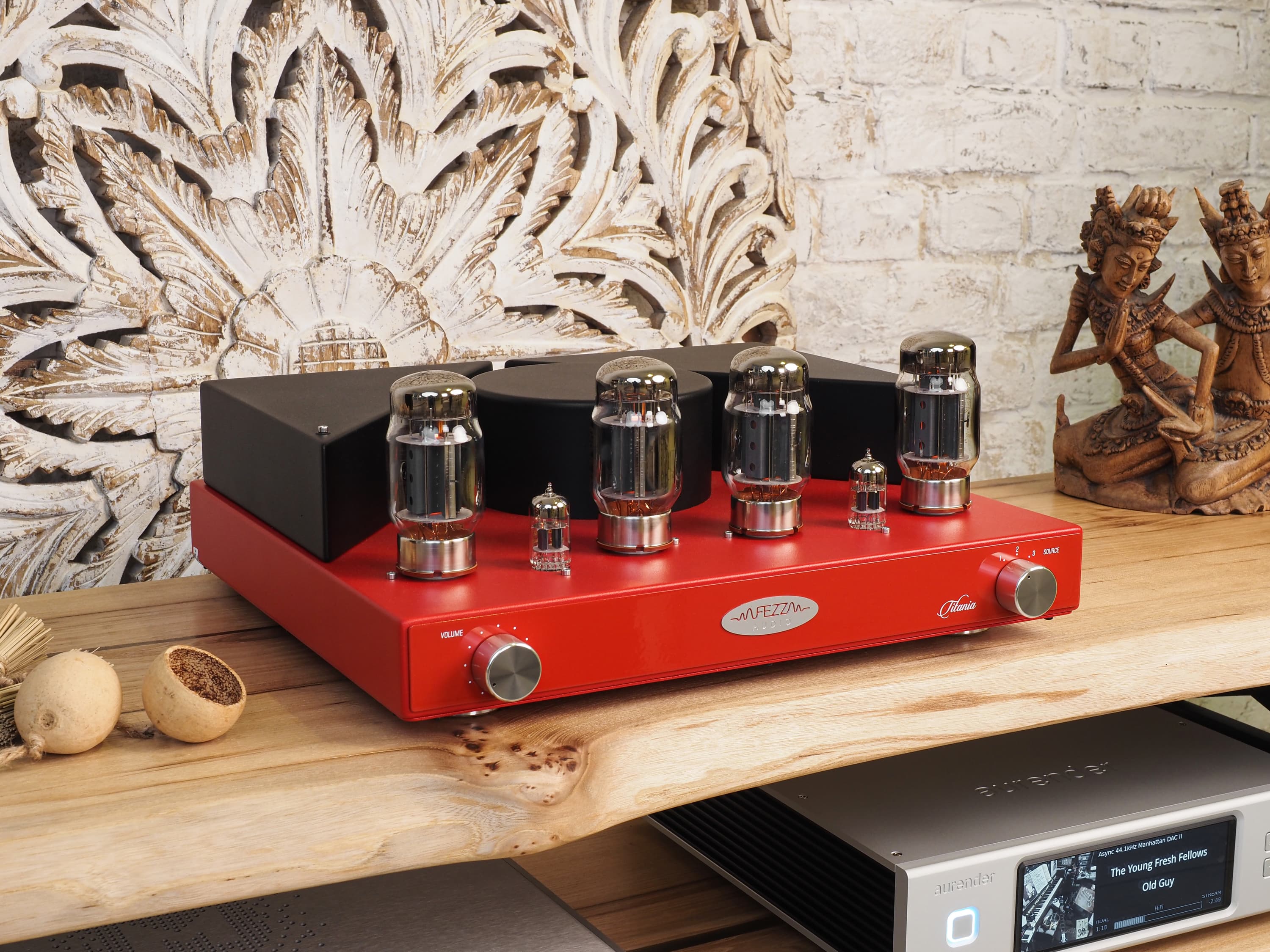Fezz Audio Titania — очень приятный усилитель как в плане эксплуатации, так и по звучанию, окраска которого присутствует, но очень в меру и ненавязчиво — с акцентом на точность и объем. При этом подключение и настройка максимально просты, есть пульт управления и даже возможность интеграции в домашний кинотеатр — не придется отказываться от многоканального звука ради качественного стерео. Дизайн с нотами винтажности, отлично сделанный корпус и хорошо заметные с разных точек лампы добавляют устройству привлекательности. Кто-то может сказать, что внешний вид не особо важен, но он вряд ли пробовал слушать любимую музыку, сидя в полутьме и задумчиво глядя на мягкое свечение ламп.