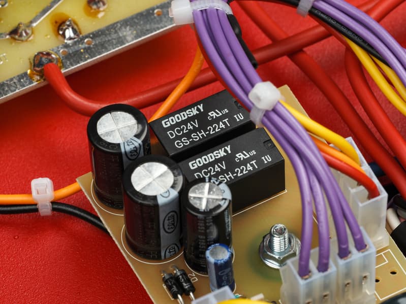 На электромагнитных реле Goodsky GS-SH-224T, по всей видимости, базируется схема защиты акустических систем.